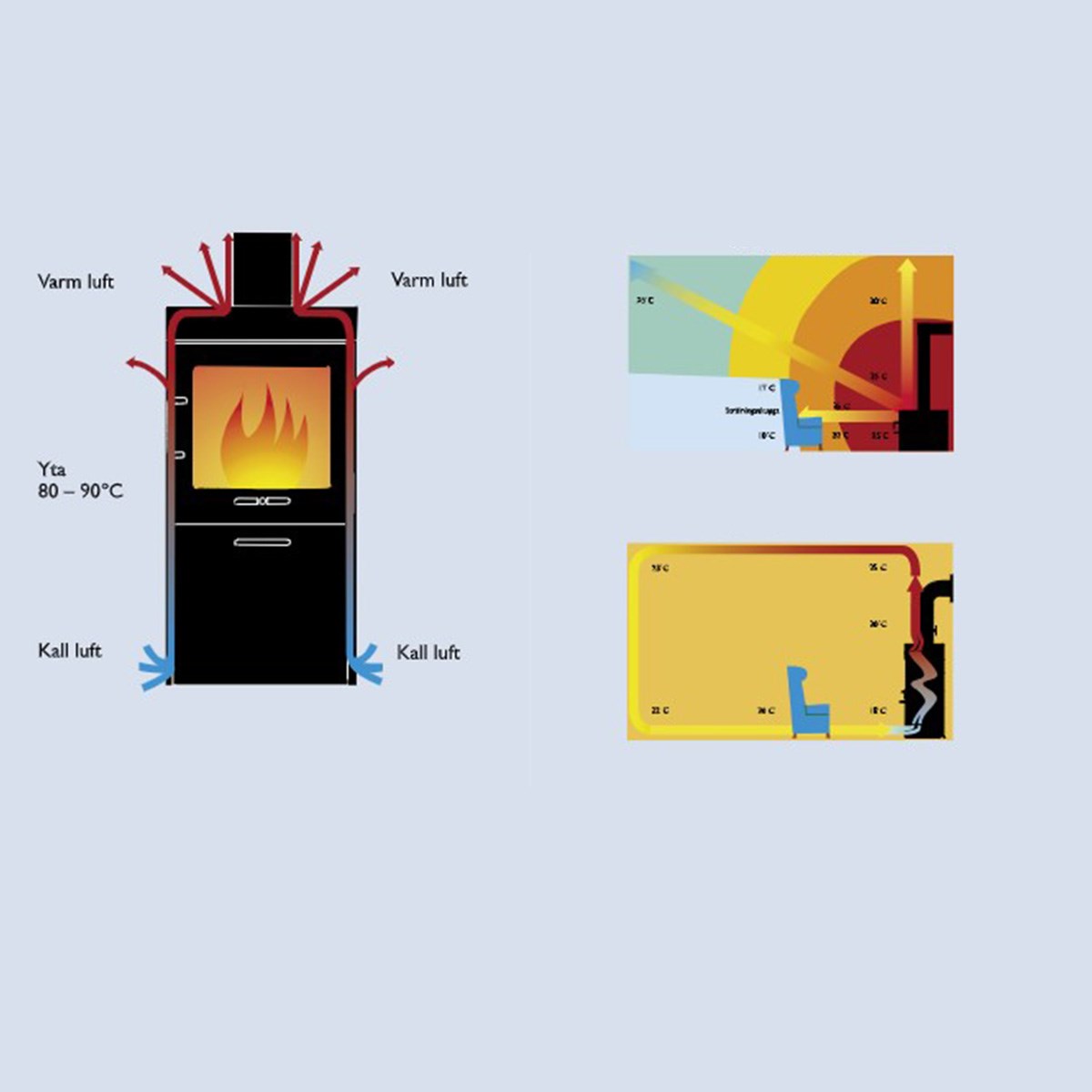 Cirkulationen medför att värmen sprids på ett behagligt sätt i rummet. Skulle man vilja ha mer hjälp med spridningen av värmen rekommenderar vi ngn av våra effektiva kaminfläktar!