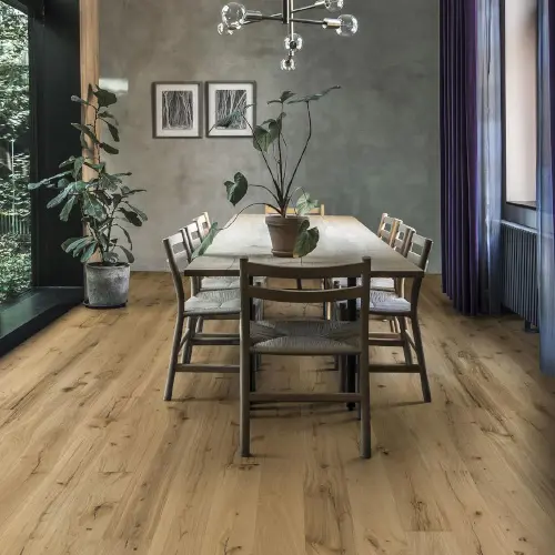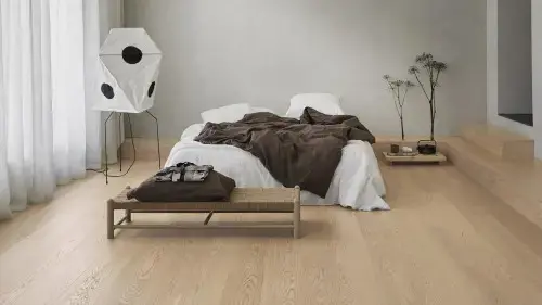 - För att säkerställa bästa resultat vid golvläggning är det avgörande att hålla den relativa luftfuktigheten (RF) mellan 30-60% både under och efter installationen. Temperaturen i rummet och på materialet bör ligga mellan 15-23°C. Därför är det viktigt att förvara golvpaketen i denna miljö i minst 24 timmar innan du börjar lägga golvet.