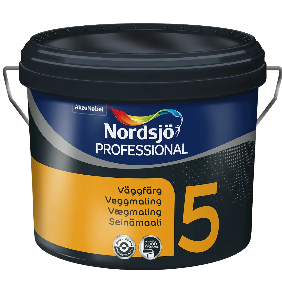 Professional 5 är en helmatt vattenburen väggfärg med utmärkt täckförmåga som är avsedd för målning inomhus