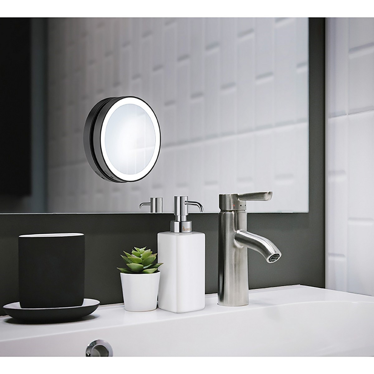 Smidig svart sminkspegel med sugproppar så du enkelt kan sätta fast den på din vanliga större spegel. Med LED-belysning och 7 ggr förstoring får du allt du behöver för att kunna se detaljerna i sminkningen eller linjerna vid trimning av skägget.
