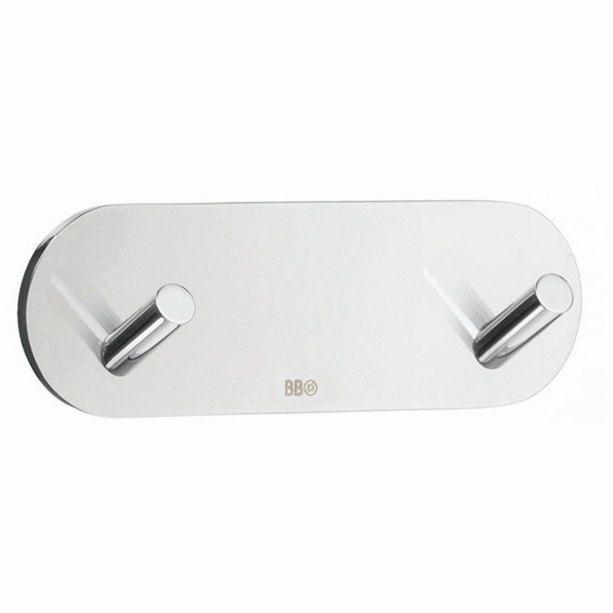 Självhäftande handdukskrok med en bakplatta som har rundade mjuka kanter. Klassisk dubbelkrok som är tillverkad av rostfritt stål och har en blank kromad yta.
