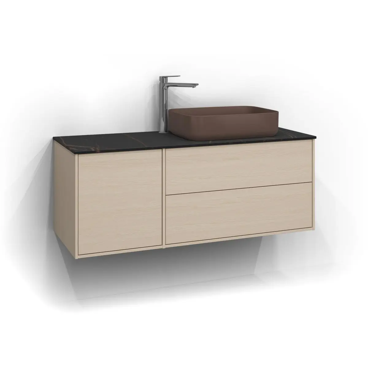 Den unika formgivningen blir som en förlängning av hemmet in i badrummet. Fronterna på möblerna sätter en känsla som ger badrummet karaktär. Välj mellan Plan, Push open, Rand och Relief.