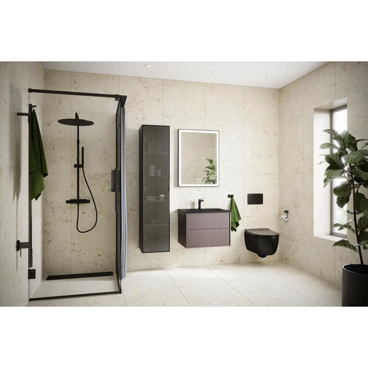 Den unika formgivningen blir som en förlängning av hemmet in i badrummet. Fronterna på möblerna sätter en känsla som ger badrummet karaktär. Välj mellan Plan, Push open, Rand och Relief.