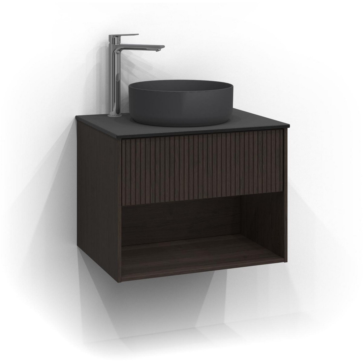 Den unika formgivningen blir som en förlängning av hemmet in i badrummet. Fronterna på möblerna sätter en känsla som ger badrummet karaktär. Välj mellan Plan, Push open, Rand och Relief.