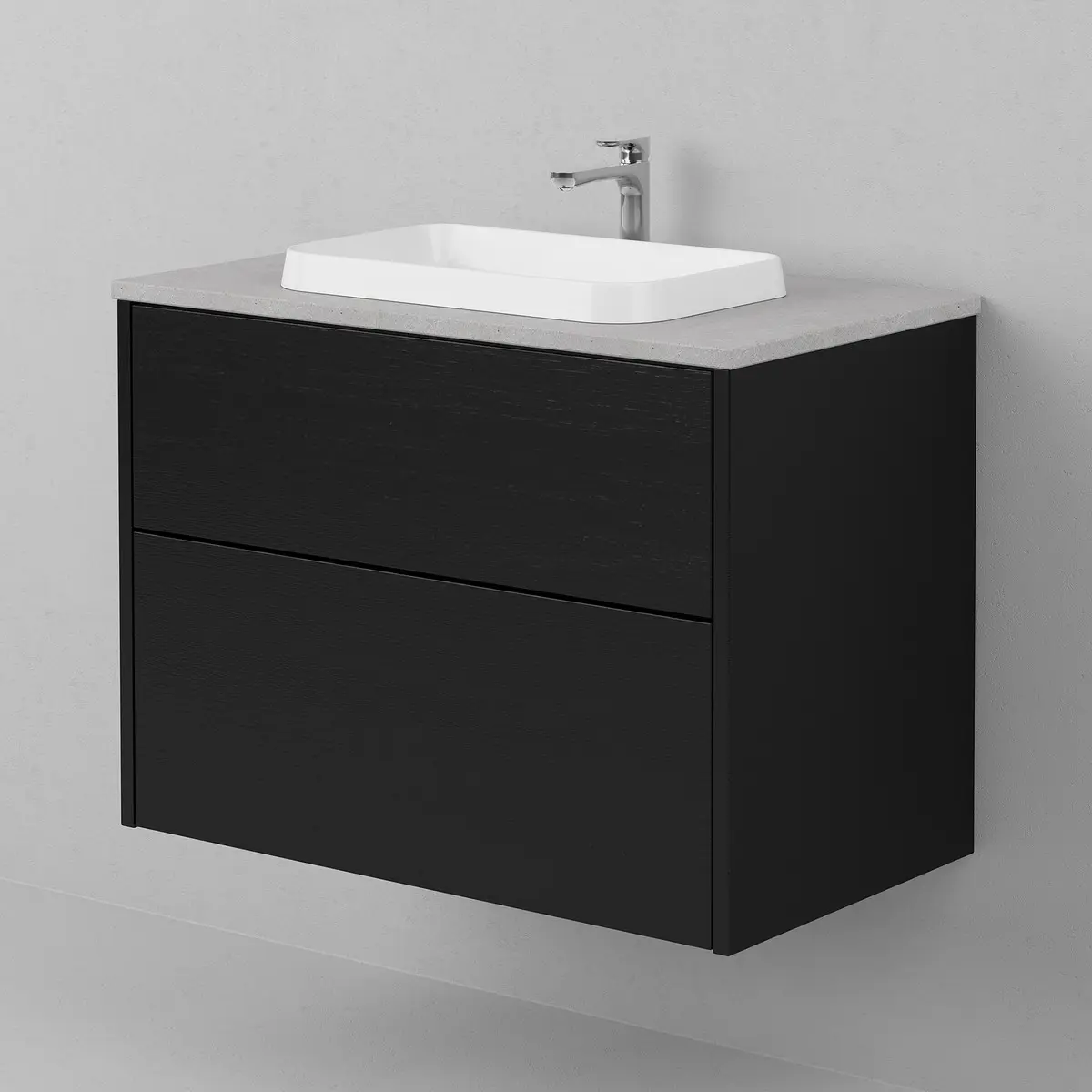 Den släta fronten till Grands innanförliggande lådor skapar ett symmetriskt uttryck med raka linjer mellan lådor och gavlar. Grand Solid finns i förutom vitt i tre vackra, äkta fanér som ger en taktil känsla när du drar handen över ytan: Natural oak, dark oak och black oak.