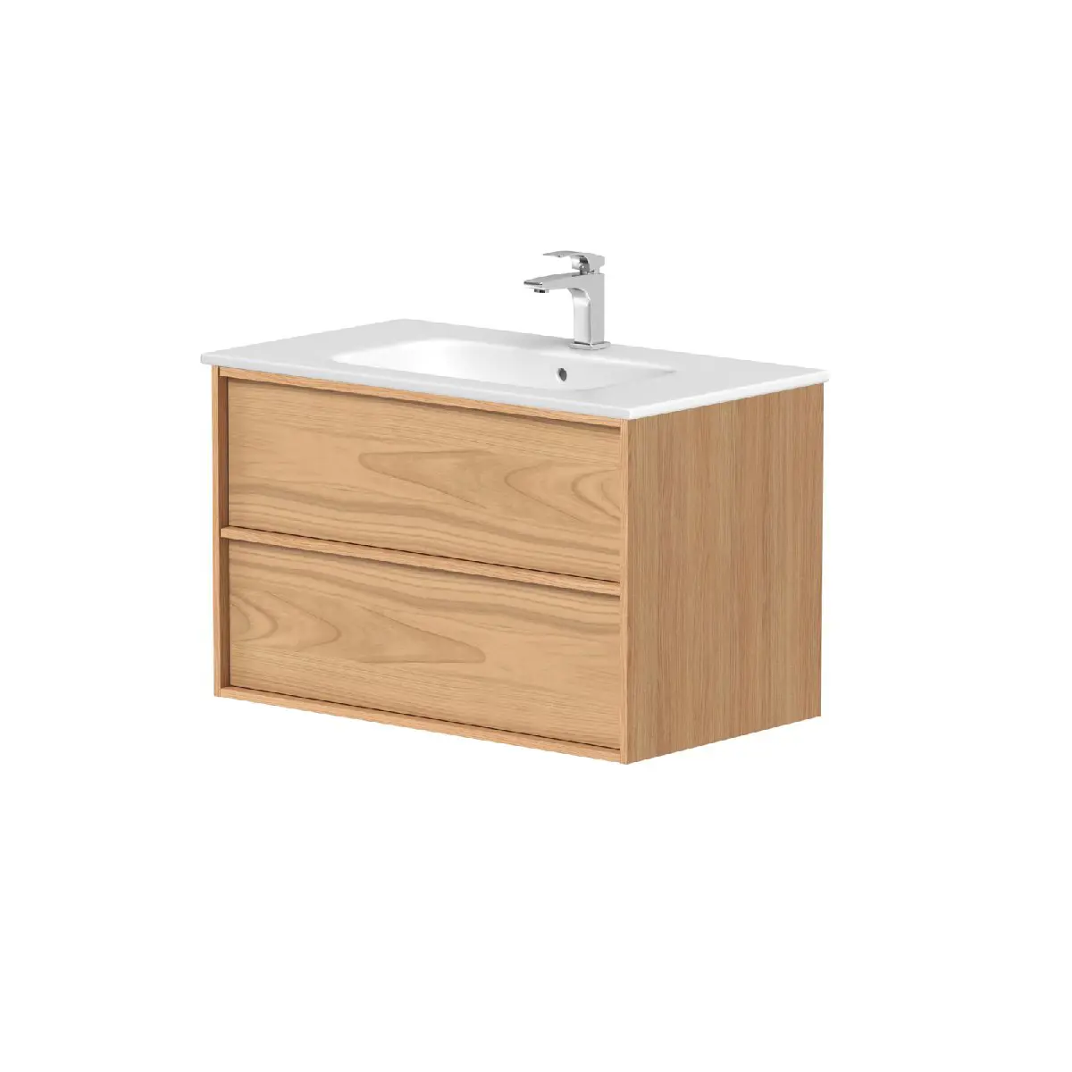 Kame Badrumsmöbel Home 80x45cm kommer i mörk ek och neutral ek, här möts toppkvalité och funktion! Kommoden har en vacker inramining med en list och integrerat handtag. Skandinavisk minimalistik design med enhetliga former och varma trätoner i en högkvalitativ ekfanér. Välj mellan flera bredder med nedsänkt handfat eller ett ovanpåliggande alternativ med en snygg bänkskiva!