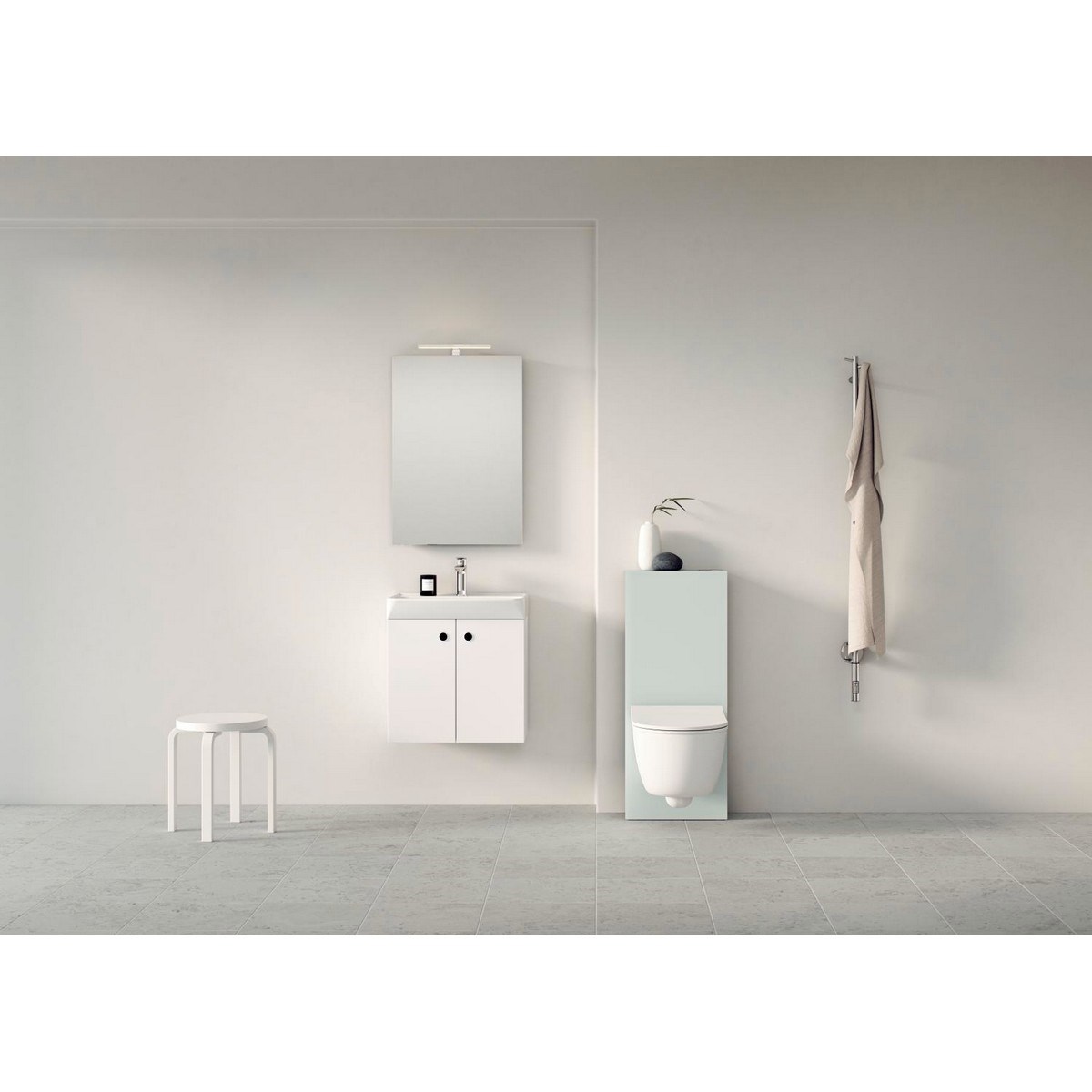 Intro - Plåt och funktion i skön symbios. Det här är en hälsning till alla er med ett litet badrum men med stora drömmar. Du får en formgivning med rena linjer och stort fokus på det praktiska. Intro är av plåt och tål tuffa tag, samtidigt är möbelserien trendig, smidig och tar liten plats.