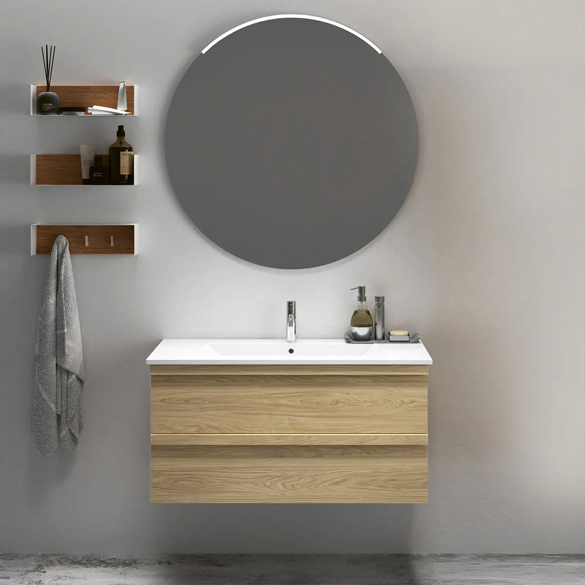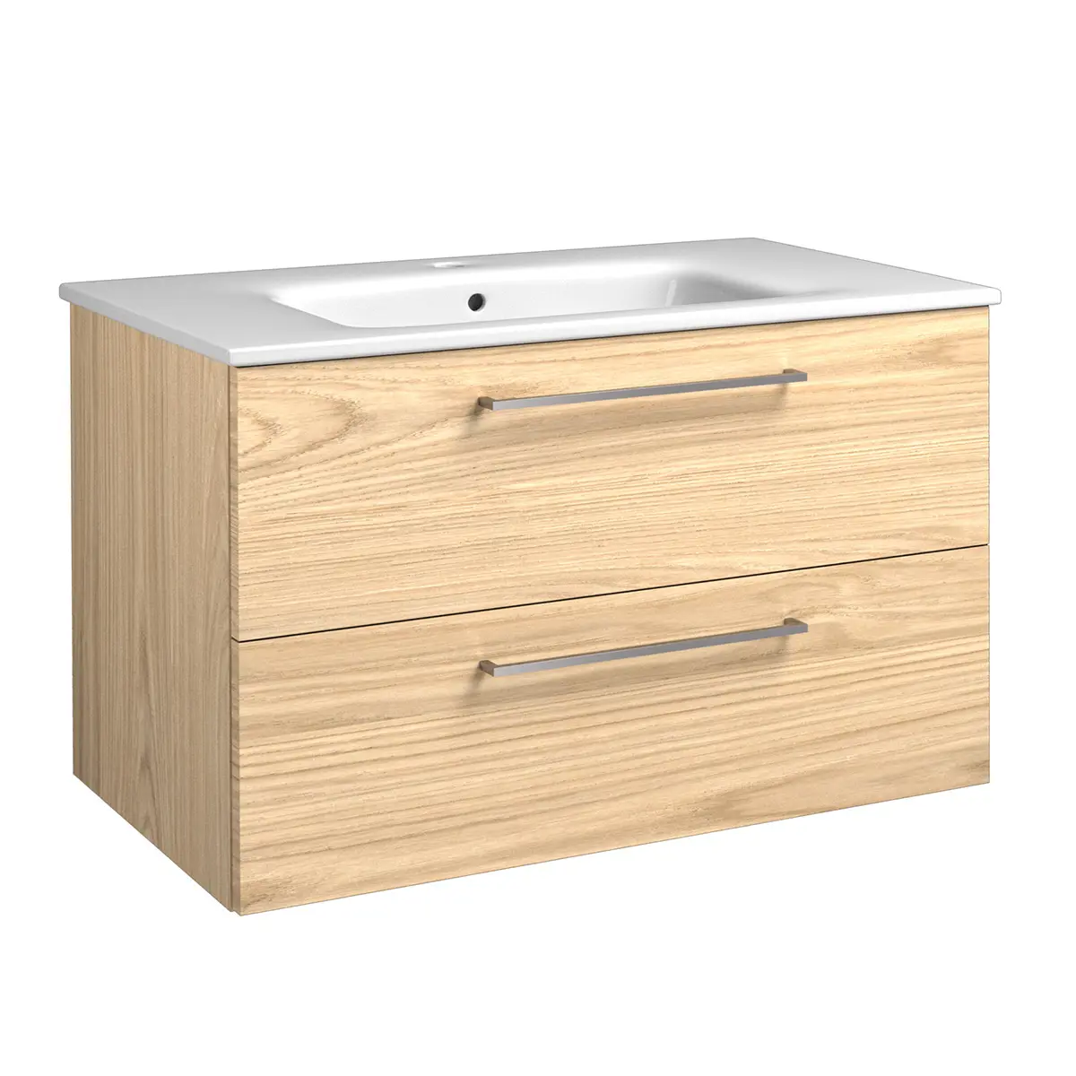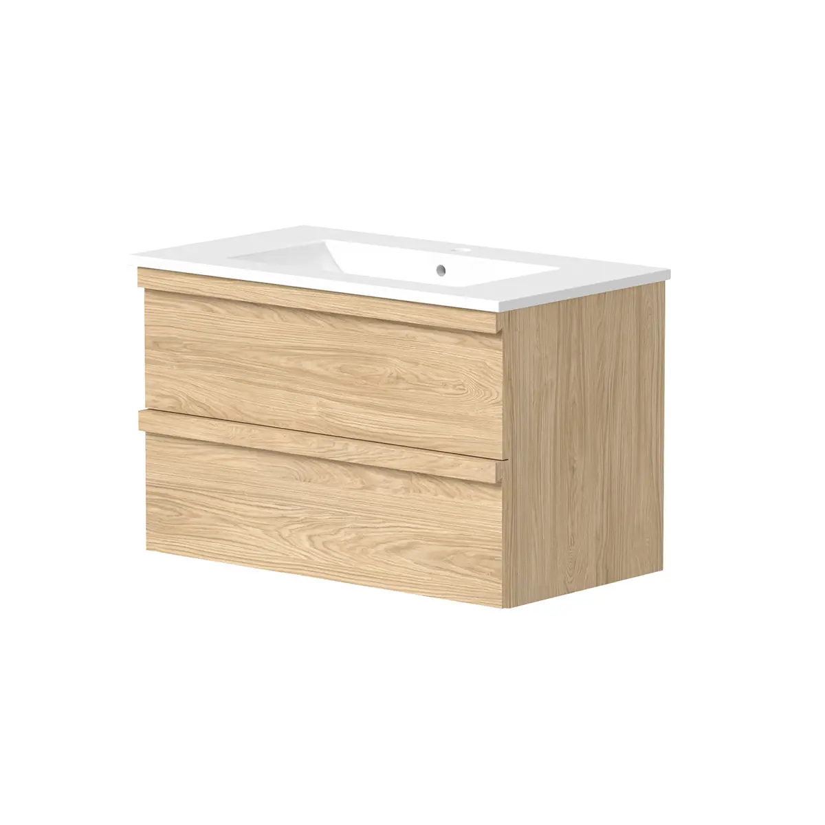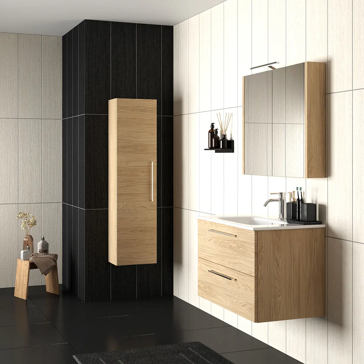 Badrumsmöbeln Joy 80cm i ljus ek med handfat i porslin, från RB Bathroom är en fullträff. Men sin höga kvalité och sitt låga pris har den blivit en storfavorit för våra kunder som behvöer en snygg, mindre kommod med maximalt med förvaring. Med sitt generösa djup finns plats för det mesta!