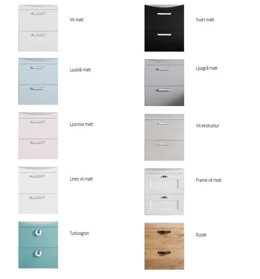Hafa Life badrumsmöbel ger dig valmöjlighet med flera olika lådfronter i fina färger och olika utförande. Life finns även med luckor om du föredrar det. Hafa Life finns i tre bredder och kombineras med Life spegelskåp eller Store spegel som har dekorativ LED-belysning som lyser runt om.