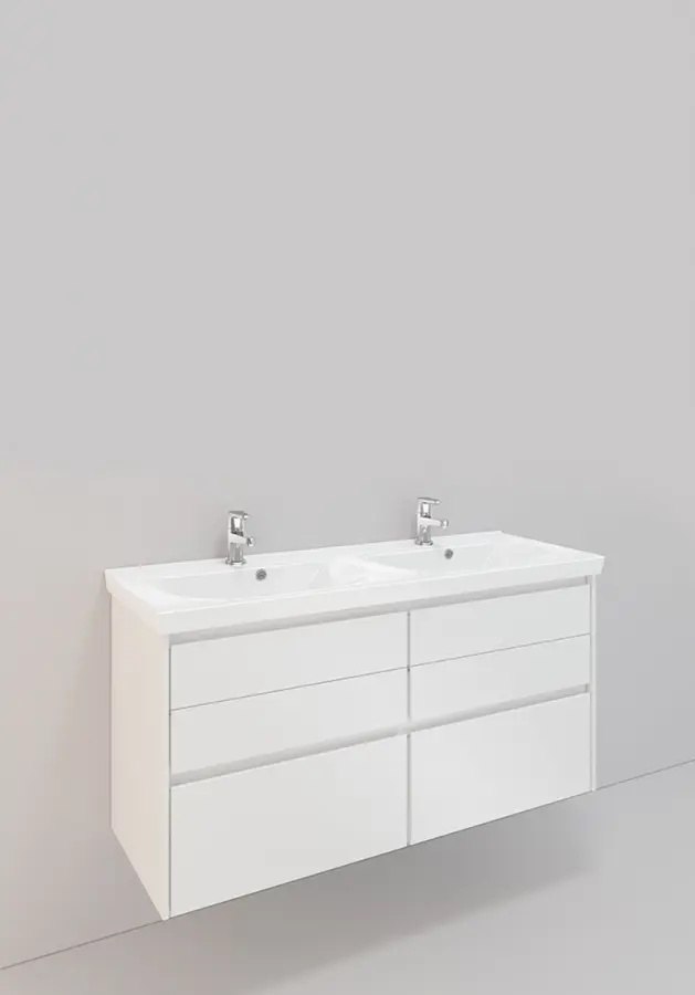 Badrumsmöbel Lifestyle Lc 118 Dubbel Med 6 Lådor Högt Handfat 120cm, Vit