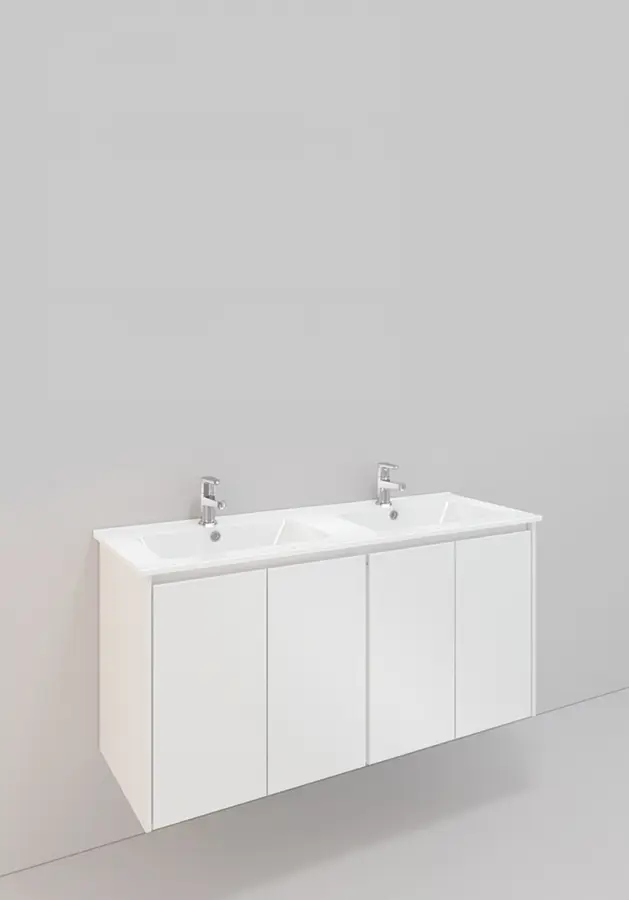 Badrumsmöbel Lifestyle Lc 121 Dubbel Med 4 Dörrar Lågt Handfat 120cm, Vit