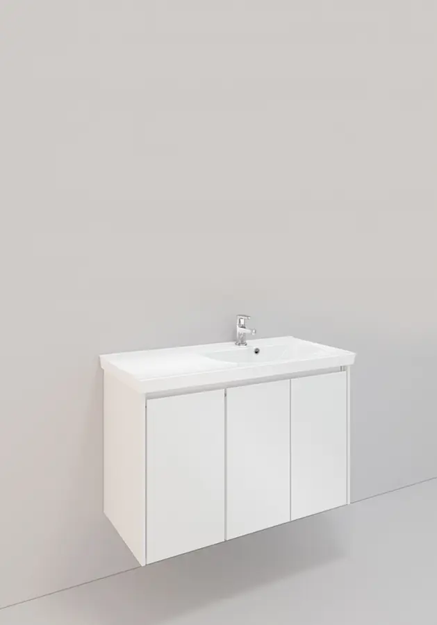 Badrumsmöbel Lifestyle Lc 96 Vänster Med 4 Lådor Peak Handfat 120cm, Vit, Vänster