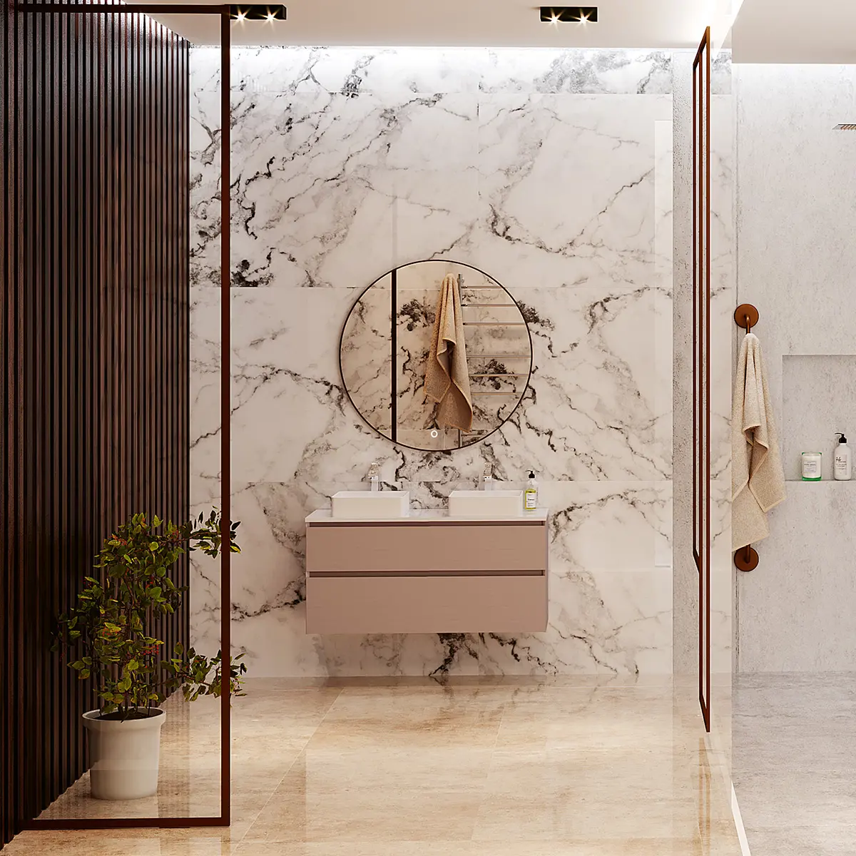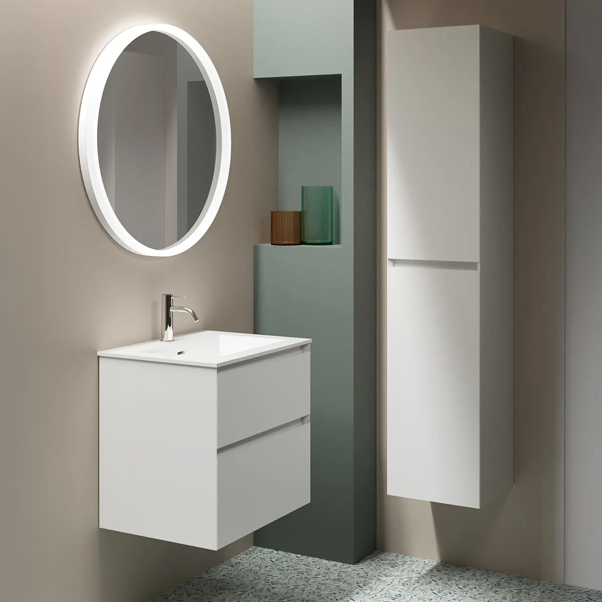 Spegelskåp och högskåp på bilden köpes separat.