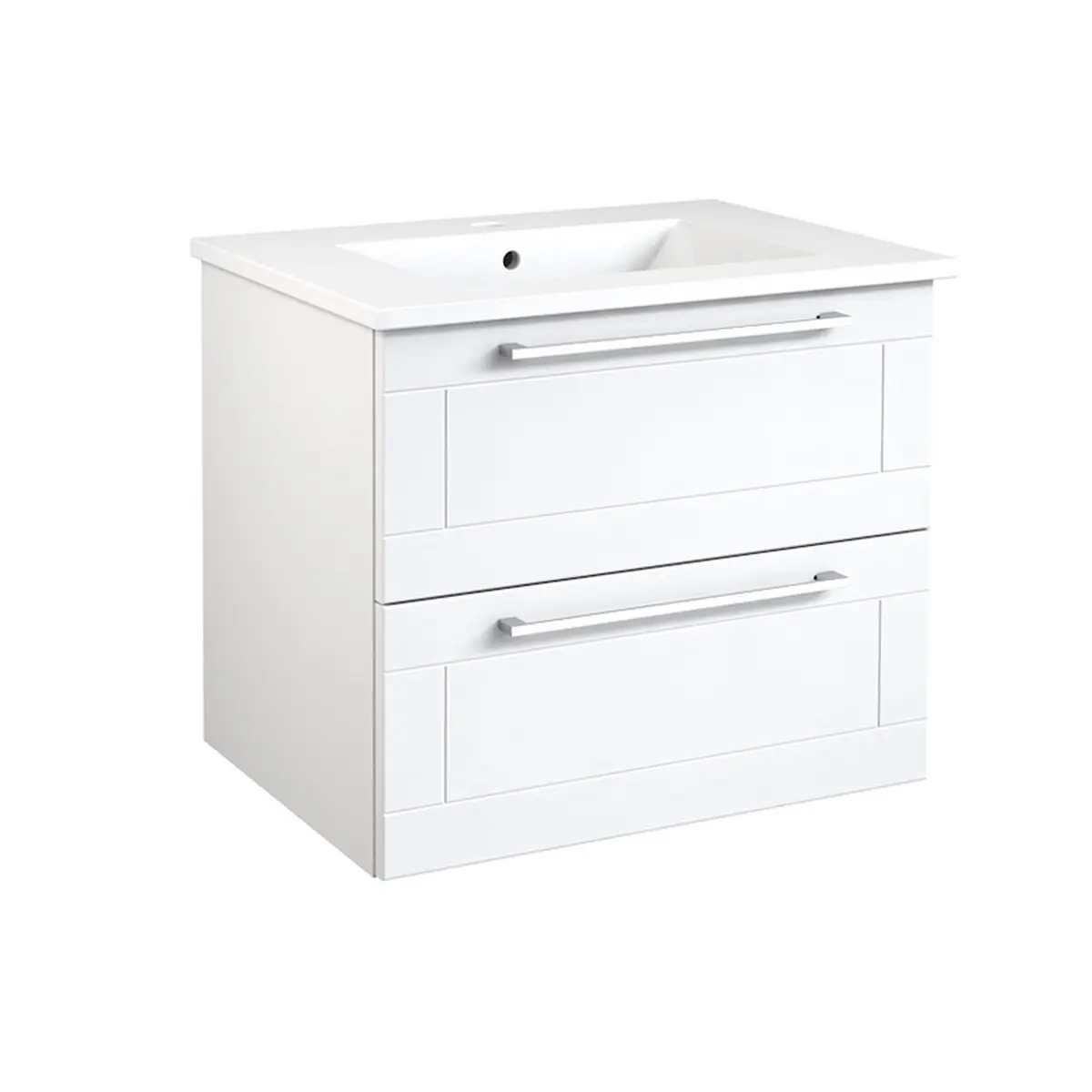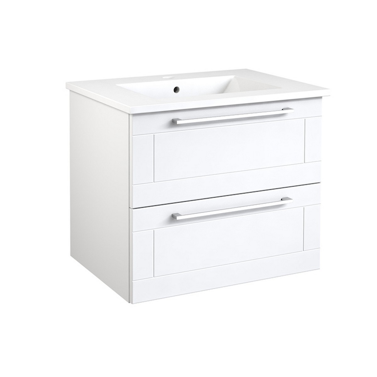 Serena Retro är en modern badrumsmöbel med raka linjer och ramfront. Möbeln har mjuksstängande lådor.