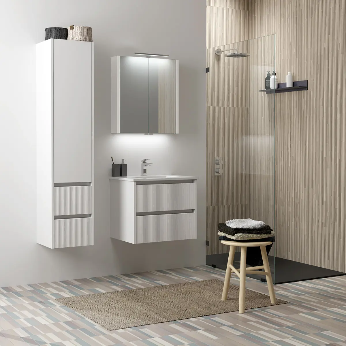 Badrumsmöbel Urban 80cm, Matt, Vit, Krom är en vacker badrumsmöbel med modernt snitt och dekorativa ribbor i fronten....