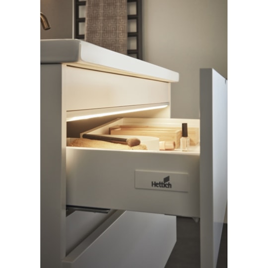 Tvättställsskåp i sammetsmatt lack i svart eller vitt med mjukstängande låda som ger generös förvaring. Inklusive nedsänkt handfat och spegel. Tvättställsskåpet är enkelt att installera för en person med skena på vägg. Förberett för både vägg- och golvavlopp i bakkant för enkel montering. Justerbara upphängningsbeslag. Komplettera med PUM-vattenlås, 126 56 00 samt Go LED-lampa. Sätt din personliga stil med ett av våra handtag eller knoppar.