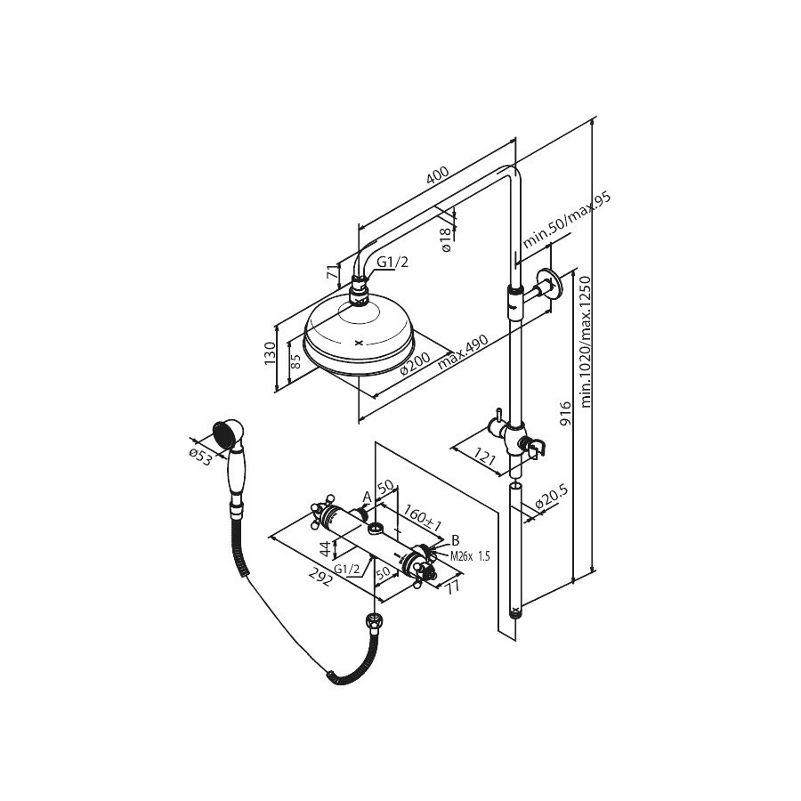 Takduschset med blandare