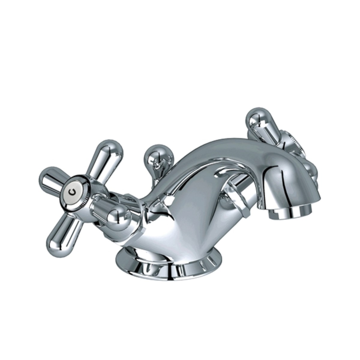 Tvättställsblandare i förkromad mässing med lyftventil.