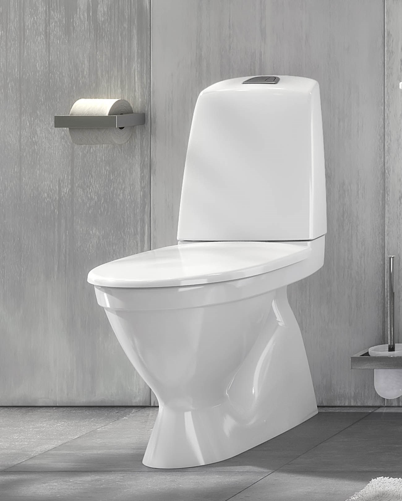 Toalettstol Nautic 1500 med dolt s-lås, Hygienic Flush och 4/2 Liter spolmängd. Utrustad med standardsits och avsedd för skruvmontage