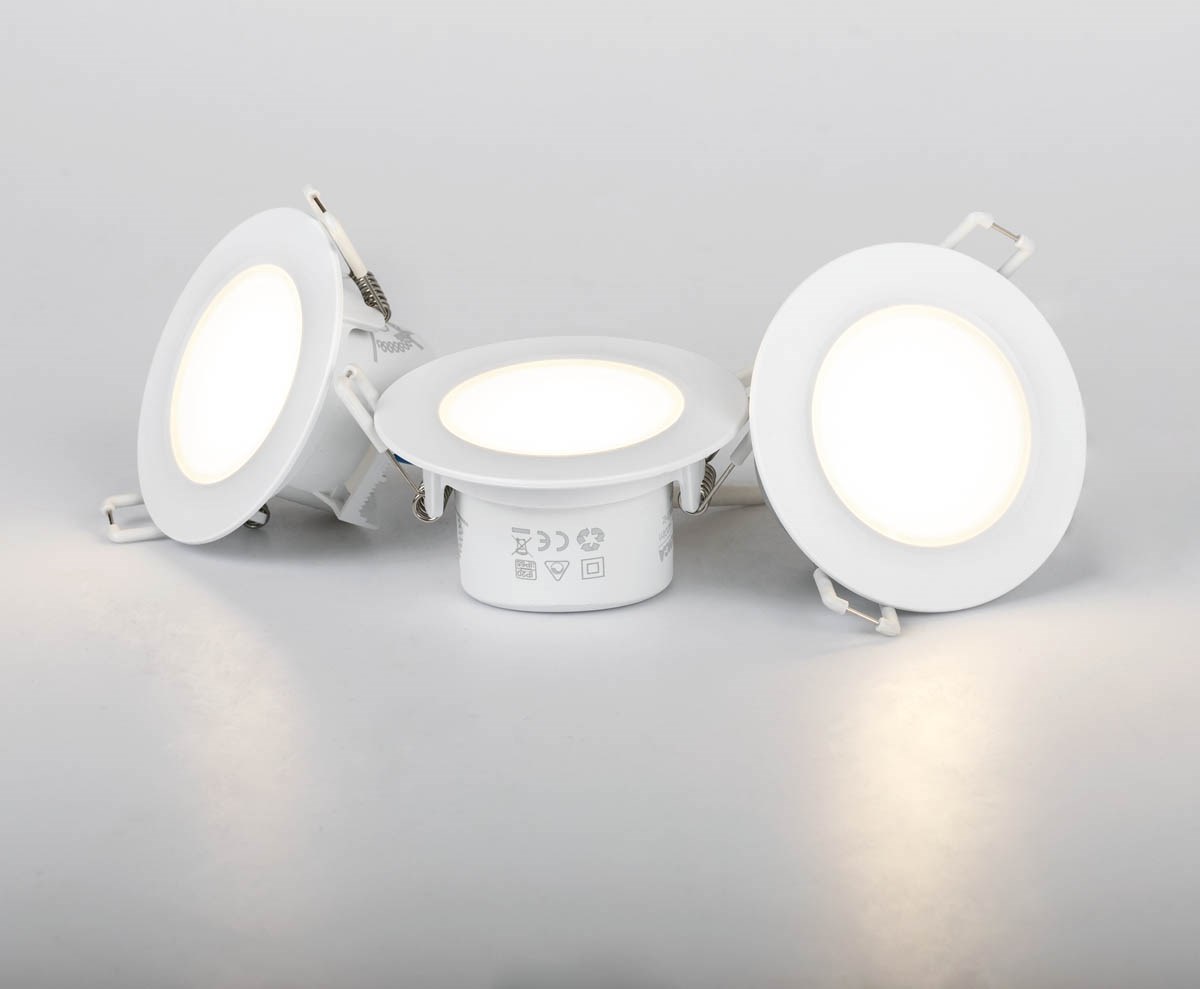 Doris är en energisnål och dimbar downlight med IP65-klassning. Doris har en ljusstyrka på 400 lumen och en färgtemperatur på 3000K.Denna spotlight har ett opalt bländskydd vilket ger ett mjukare intryck med en spridningsvinkel på 120 grader passar lika bra i alla husets rum oavsett om du vill lysa upp ditt badrum eller kök.Doris finns i 1-pack och 3-pack och kommer i färgen vit. Det finns möjlighet att byta ut den vita frontringen på Doris till svart, borstat stål eller mässing. Frontringar säljes separat.