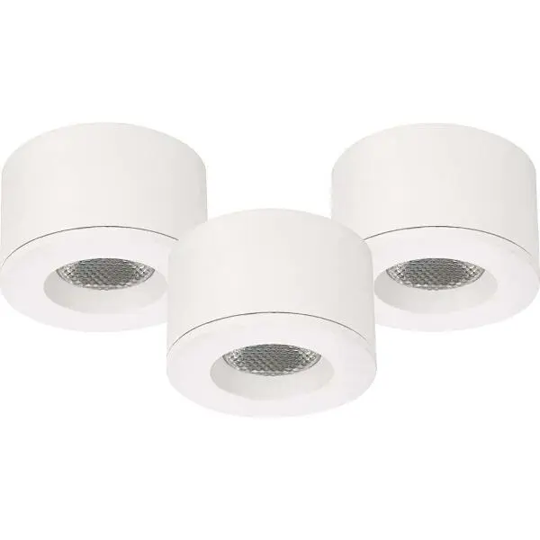 Setet består av 3 st downlights, 3 st förlängningskablar 1,5 m, 1 st grenbox 3-vägs och 1 st dimbart drivdon som även går att montera i apparatdosa. För infällt eller utanpåliggande montage i möbler eller i fönsternischer. En armatur med insänkt diod som ger bra avbländning. Dubbelisolerad. S-märkt. Dimbar.Ljusregleras med bakkantstyrd transistordimmer (RC). Armaturen är godkända för montering mot normalt brännbart material och direkt mot isolering.