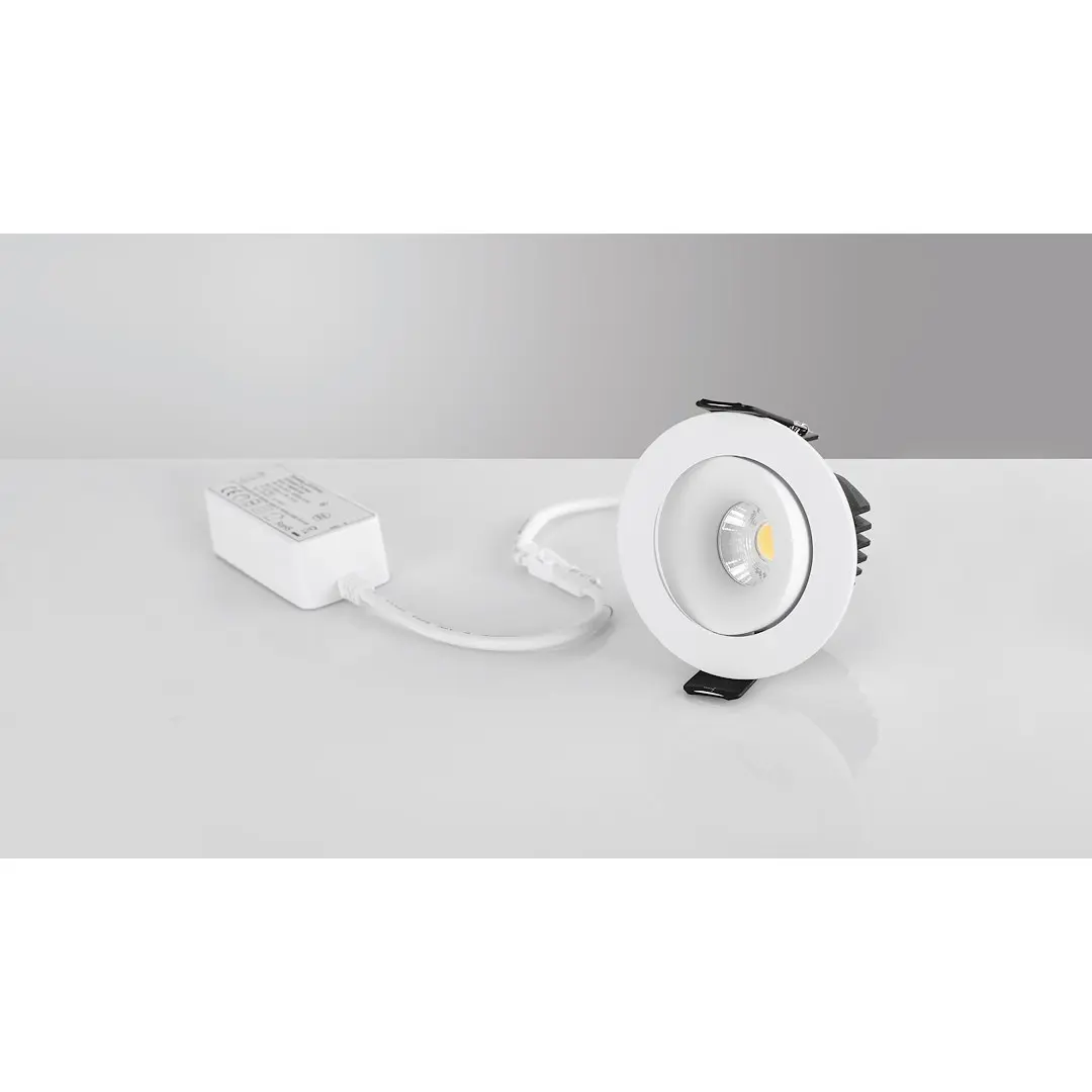 För infällt montage. Anslutes till snabbkopplingsplint 4x2,5 mm². Vippbar 20°. Komplett med drivdon. Dimbar med bakkantstyrd transistordimmer (RC).