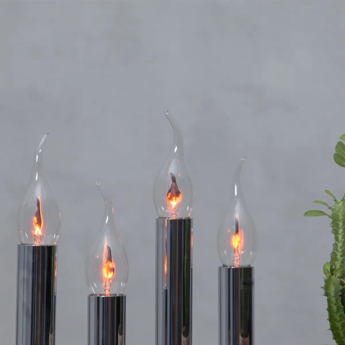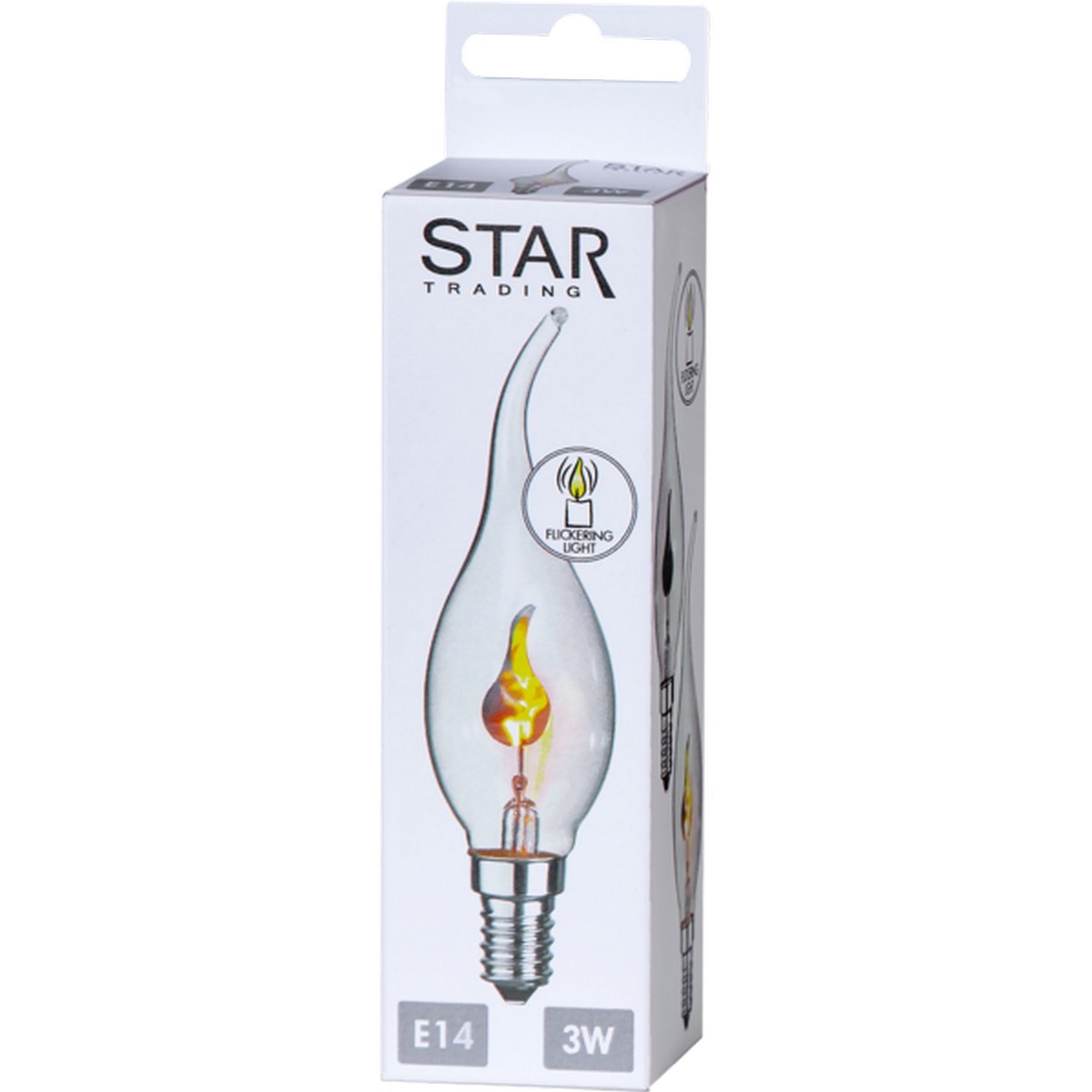 Dekorativ glödlampa där skenet liknar en eldsflamma. Lampan har E14-sockel och klar glaskropp.