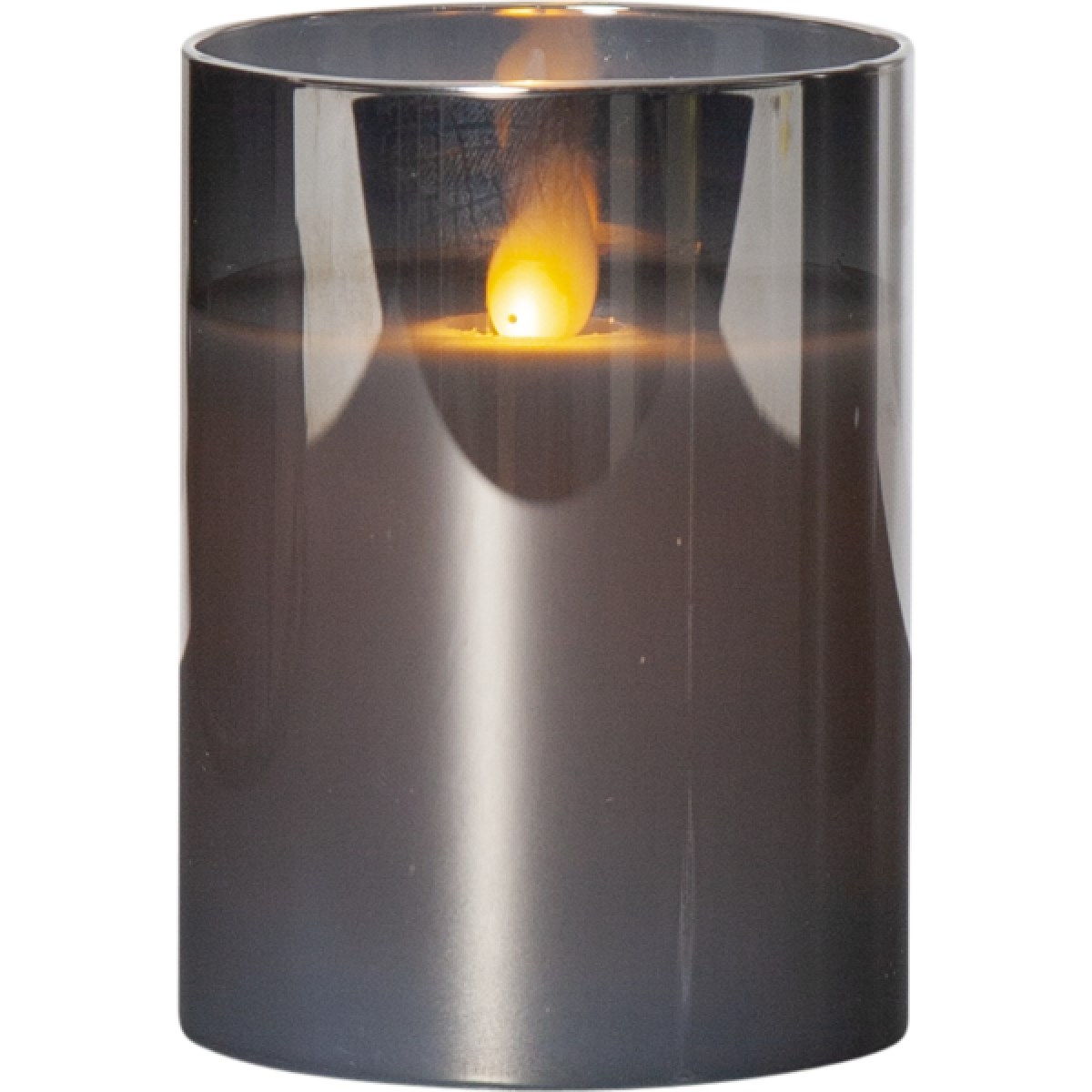 Rökfärgad glashållare med vaxljus inuti, Twinkle flamman lyser med ett naturligt gyllene sken. Timerfunktion gör det enkelt att ställa in när ljuset ska lysa.
