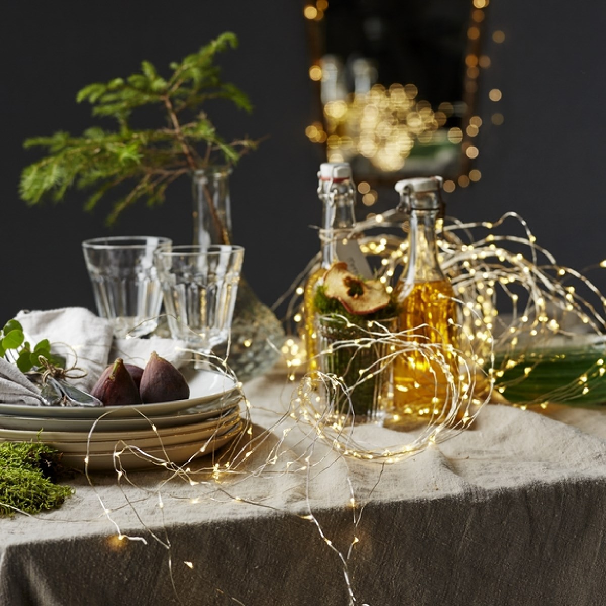 Varmvit knippe dewdrops led ljusslinga med 80 st. ljuspunkter. Slingan är batteridriven och har silver metallkabel. Kan användas vid diverse dekorationer, vid tex dukningar, blomsterarrangemang, i fönster, på väggen osv. Den inbyggda timern gör det lätt att ställa in när produkten ska lysa.