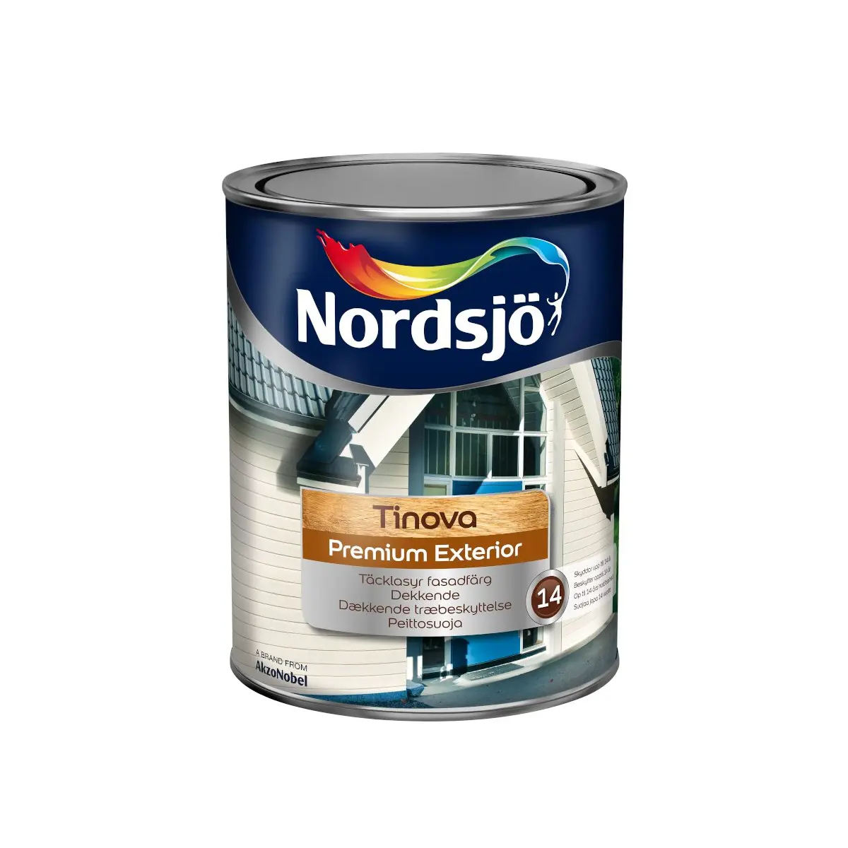 Nordsjö Tinova Premium Exterior framhäver ytans trästruktur och ger samtidigt täckfärgens jämna yta på gamla och nya träfasader. Vidhäftningsförmågan gör den särskilt lämplig till ommålning utomhus av tidigare laserat trä. Används Tinova Premium Exterior+ i system med Tinova Wood Base Oil och Tinova Primer Exterior resulterar det i en livslängd på upp till 14 år.