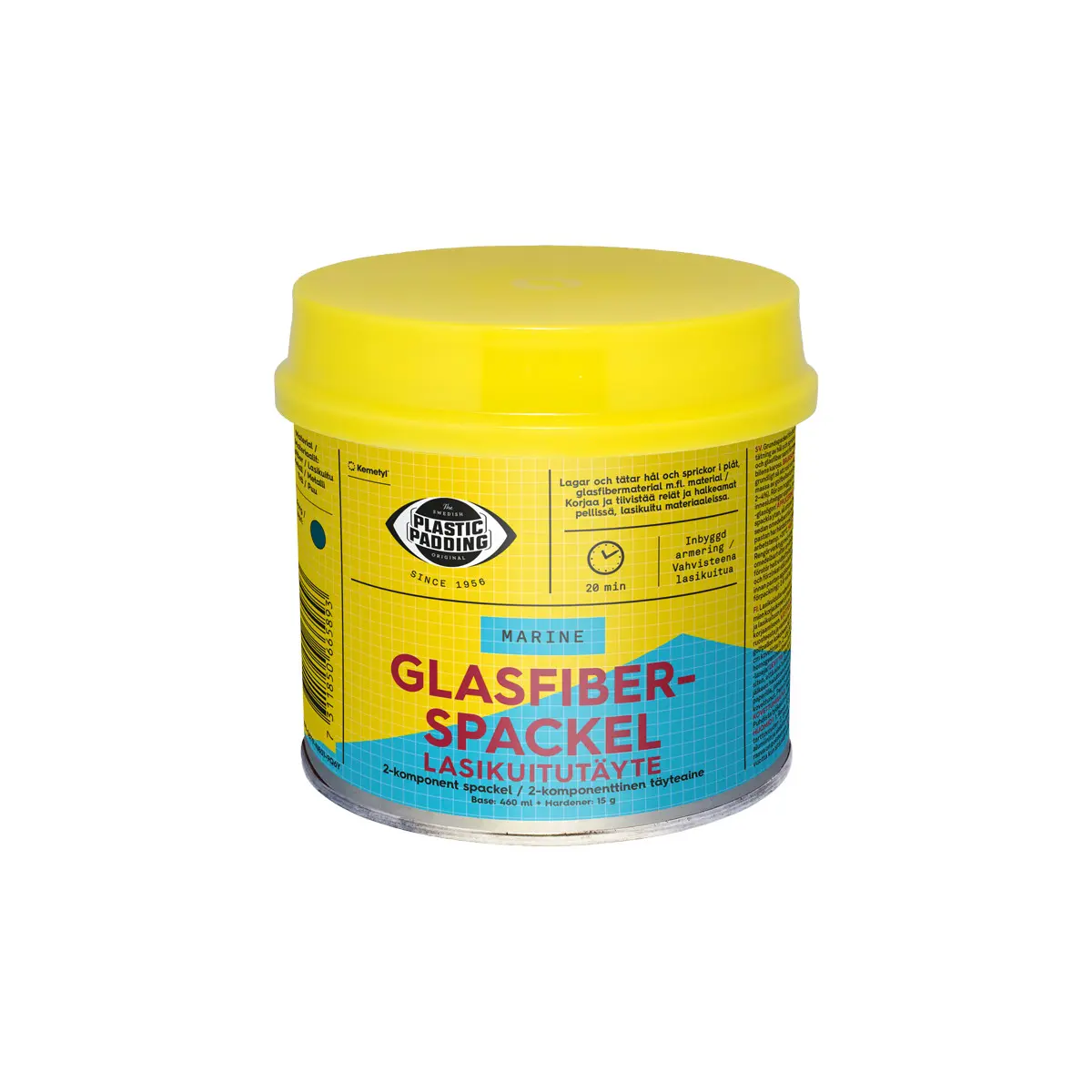 Grundspackel förstärkt med glasfiber för reparation och tätning av större hål och sprickor i båtskrov och glasfiberkarosser. Lämplig för användning på glasfiber och metall samt även för reparation av stora hål och bucklor i bilens kaross.