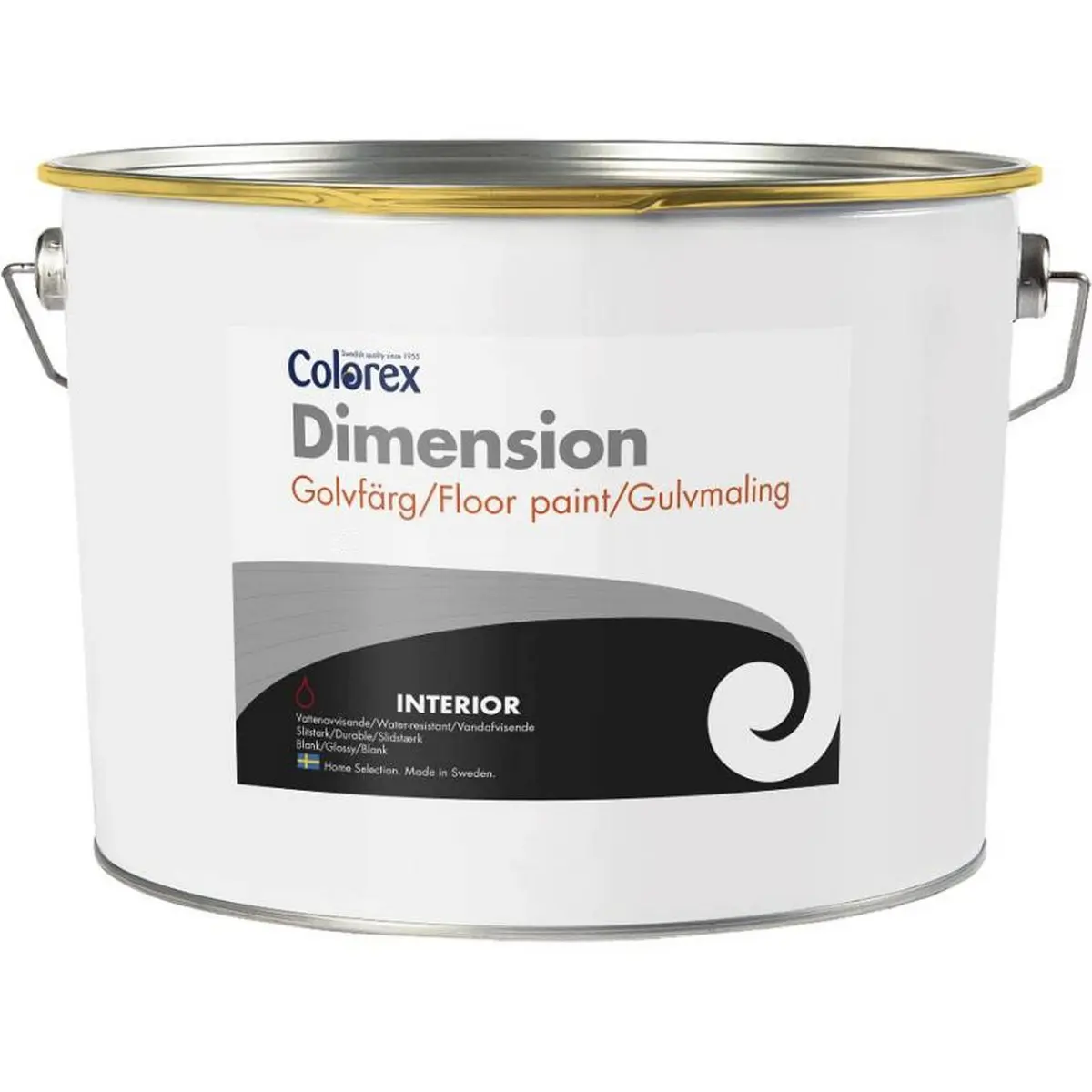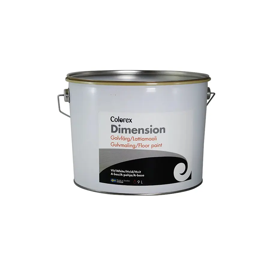Måla minst 2 gånger med oförtunnad Dimension för full täckning med roller, pensel eller, efter förtunning, med spruta. Vid betongmålning förtunnas färgen med 10-20% med lacknafta/alifatnafta för första skiktet och därefter 2-3 skikt oförtunnat.