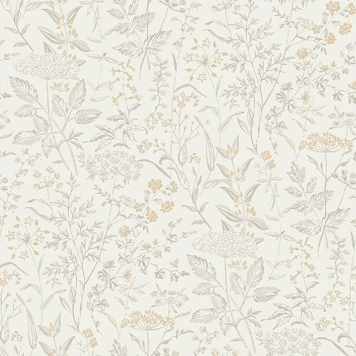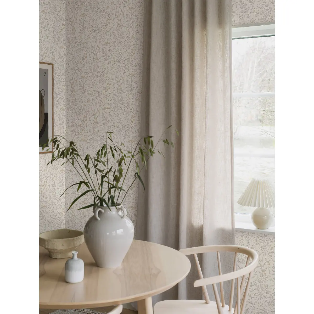 Den söta, blommiga tapeten Emil pryds av ett sirligt blommönster från 1950-talet. En hemtrevlig retrotapet som gör sig lika bra i dagens hem. Det skira mönstret ger rummet en lugn, luftig känsla och denna tapet passar lika bra i köket och vid matplatsen som i hall eller sovrum.Här ser du den ljusa tapeten Emil i en varm, välkomnande färgskala: en mjukt cremefärgad botten med blommönster i toner av brunt, grått och beige med milt ockragula detaljer.