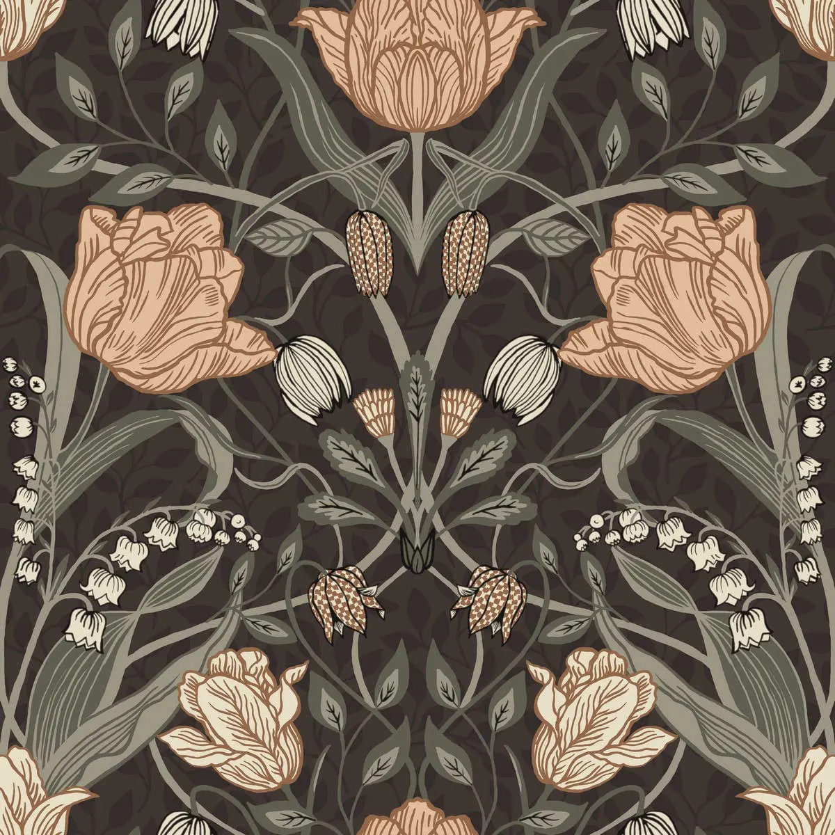 Brun tapet med stora aprikos tulpaner "Filippa"