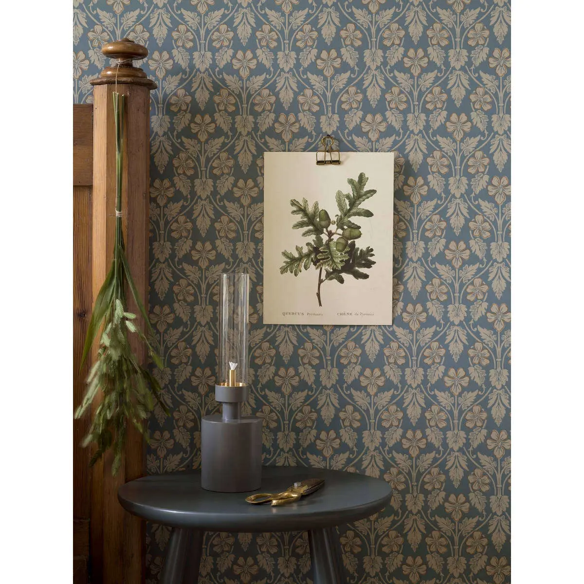 Boråstapeter Anno Nora 4535 Den småblommiga tapeten Nora är en svensk tapet från sent 1890-tal eller början av 1900-talet. Mjuka små penséer i uppstramad jugendstil skapar ett stiliserat gallerverk som ger tapeten en mycket harmonisk mönsterbild. Nora finns i tre färgställningar, här med gråblå botten och mönster i en gråbrun nyans med gyllenbruna detaljer.I tapetkollektionen Anno hittar du en skatt av gammaldags tapeter i nytryck. Här finns originalmönster från olika stilar och epoker som till exempel rokoko, art déco och jugend samt sekelskiftet och den gustavianska tiden. En fantastisk svensk tapettradition och ett kulturhistoriskt arv vi vill förvalta och hålla levande.De historiska tapeterna kommer från slott och herrgårdar men också från pigkammare och enklare hem. Medaljongtapeter, stänktapeter, storblommiga och småblommiga - alla tapetmönster har en verklig historia att berätta, och i våra varsamma tolkningar får berättelserna nytt liv.
