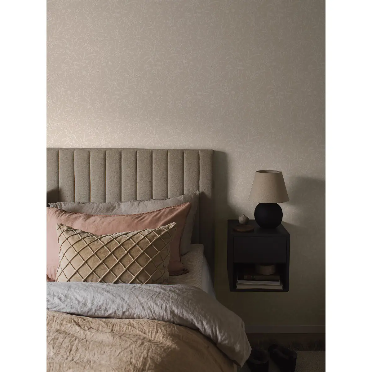 Den ljusa, grönskande tapeten Florian är återskapad från ett tapetoriginal i vårt historiska arkiv; stiliserade silhuetter av sommarängens blommor och blad på en enfärgad, diskret melerad botten. Ett skirt, luftigt och elegant mönster som ger väggen en levande känsla, samtidigt som helheten känns lugn och harmonisk.Här ser du tapeten Florian i en varm, ljus färgskala med cremevita detaljer på en ljust varmbeige botten. En drömsk, hemtrevligt tapet i en avskalad, naturlig färgställning.Moderna tapeter i ny design men också historiska mönster från vårt arkiv – 55 smidiga EasyUp-tapeter i en härlig färgskala helt rätt i tiden.Enfärgade tapeter med materialkänsla samsas med ränder, blommor, geometriska mönster och vackra ornament.Här finns något för varje rum och personlighet. En härlig mix av mönster i en vacker palett från fylliga kulörer till ljusare neutraler. Tapeterna gör sig bra på rummets alla väggar, och många av dem är också fina att kombinera med varandra.