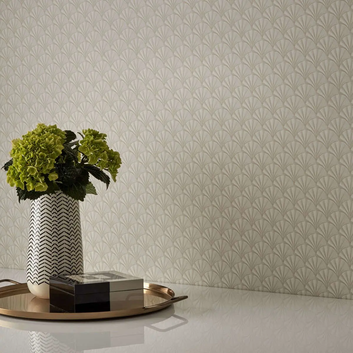 Carma Elodie 1907-142-01 är en beige tapet med klassiskt Art Deco mönster. Denna Art Deco mönstrade tapet med sina klassiska bågar är en välformad variant som pryder hus och hem på bästa tänkbara vis. Kombinera gärna med en enkelfärgad inredning för att lyfta fram tapeten ytterligare. Ny kollektion från 1838 i Art Deco stil, en trend som redan är stor och växer allt mer. Art Deco har sitt ursprung i 1920-30 talet och känns igen utav genuint hantverk i luxuösa material. Färgskalan är direkt hämtad från dagens alla trendfärger. Underbara kollektioner från tapetlandet England. Fabriken har tillverkat tapeter sedan 1838 och det märks. I dem här kollektionerna hittar du en genuin tapetkänsla i form av otroligt snygga mönster och kvalitet. Flera av mönstren är i limtryck för den där extra lyxiga känslan. Behöver enhetligt underlag. Tapeten är easy up och rekommenderas att sättas upp med lim avsett för easy up. Det går åt ca 1 liter lim per tapetrulle beroende på underlaget.