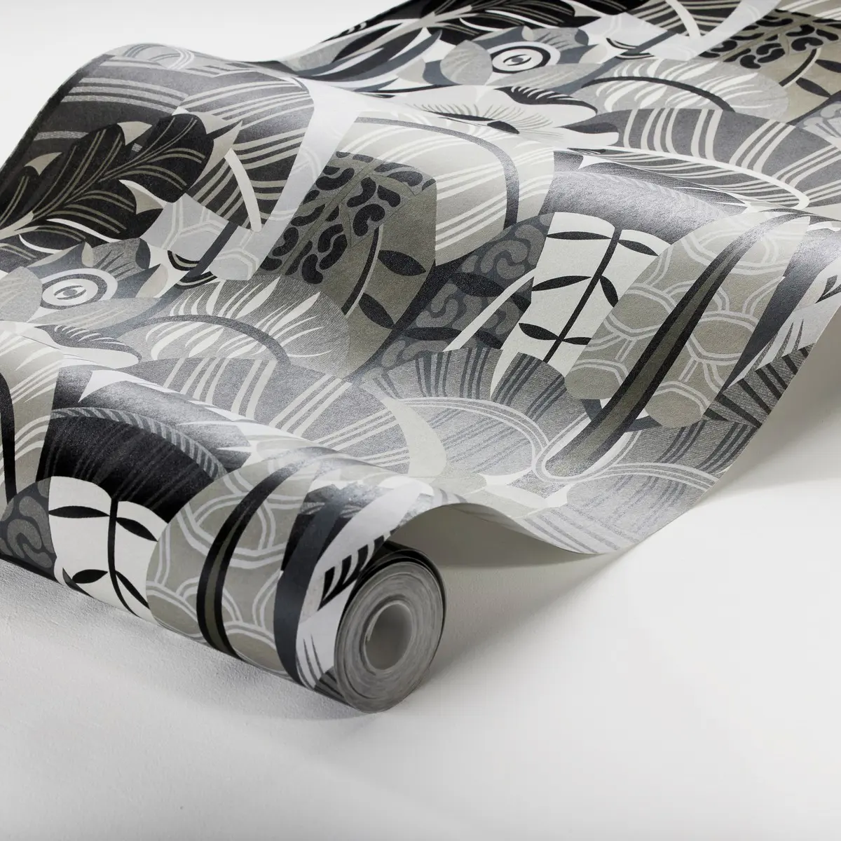 Boråstapeter Swedish Designers Hypnotic Safari 2068 är en grå easy up tapet med grafiska växter som motiv.