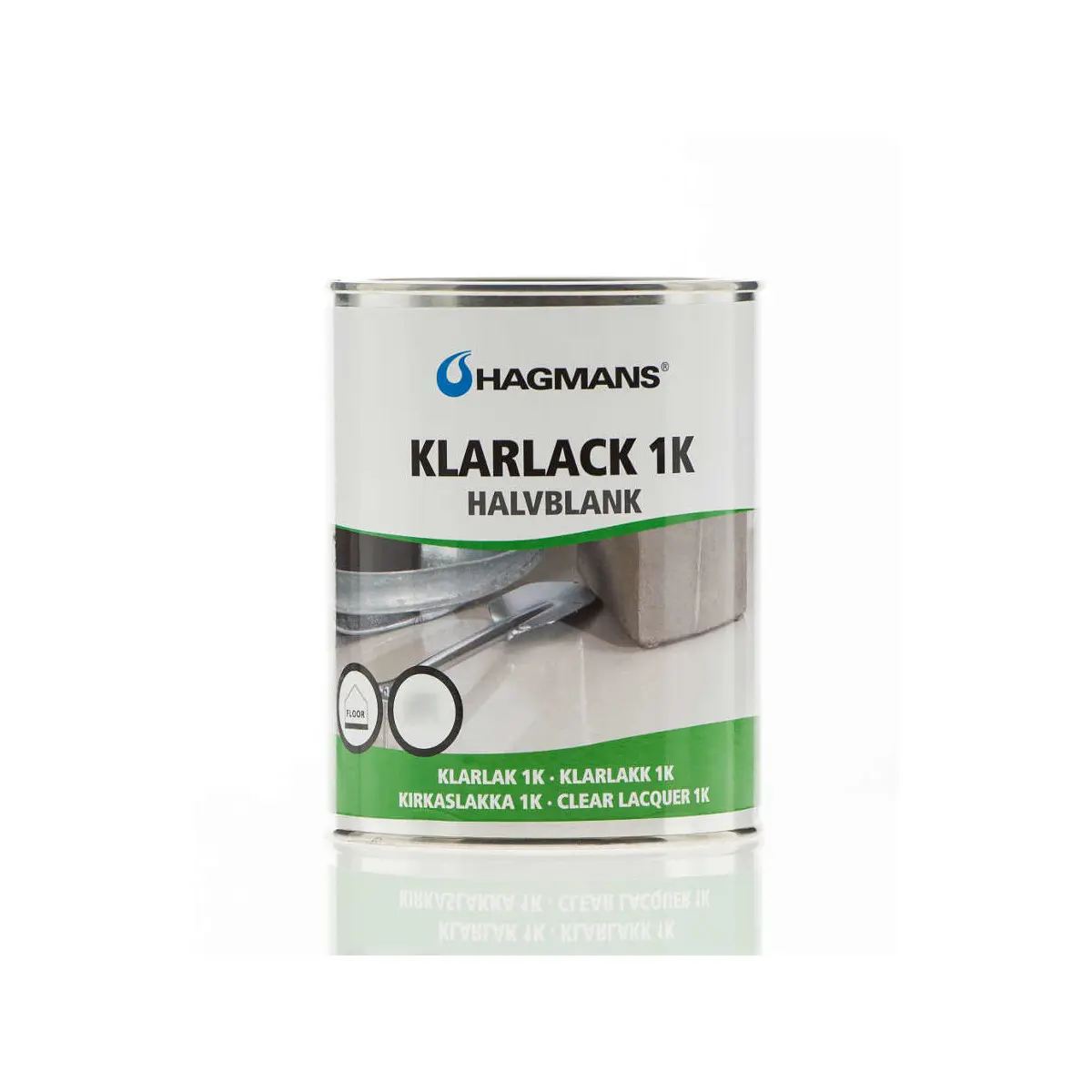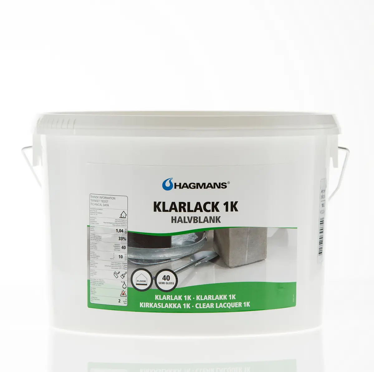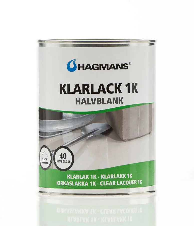 Hagmans Klarlack 1K är en lättarbetad, slitstark, reptålig och gulningsbeständig 1- komponent klarlack baserad på ren polyuretan.
