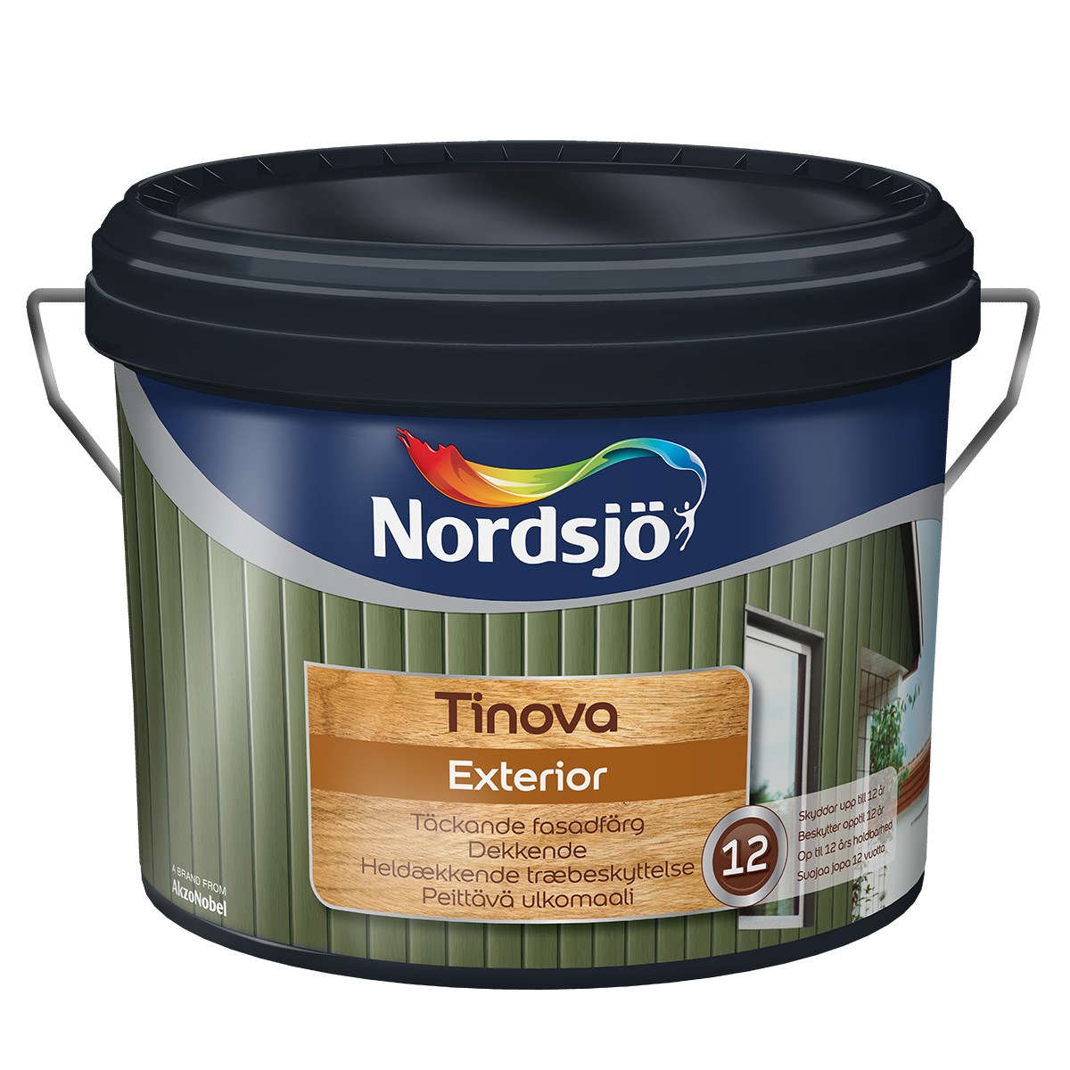 Tinova Exterior är avsedd för målning på träfasader, betong och förzinkade ytor. Färgen ger en hög ythårdhet med bibehållen elasticitet vilket resulterar i bra kulör- och glansbeständighet. Tinova Exterior i system med Tinova Wood Base Oil och Tinova Primer Exterior resulterar det i en livslängd på upp till 12 år.