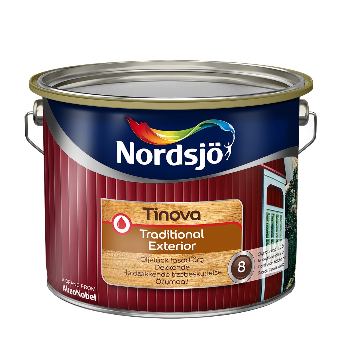 Tinova Traditional Exterior är en alkydoljebaserad färg avsedd för målning utomhus på träfasader. Oljetäckfärgen framhäver ytans trästruktur och ger en täckande och jämn yta på gamla och nya träfasader. Tinova Traditional Exterior i system med Tinova Wood Base Oil och Tinova Primer Exterior resulterar det i en livslängd på upp till 8 år.