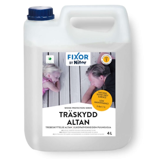 Träskydd Altan - kan tränga djupare ner i träytan. Detta förstärker effekten av den totala behandlingen. Kiselteknologi som ger unika rengöringsegenskaper. Löser effektivt upp oljerester och smuts, avlägsnar alger, svampar och mögel, samt motverkar ny påväxt. Anpassad för minsta möjliga miljöpåverkan och märkt med Bra Miljöval. Åtgång: 5m²/l