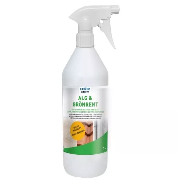 Färdigblandad spray. Enkelt och effektivt rengöringsmedel mot alger, mögel, lav, svarta prickar m.m.