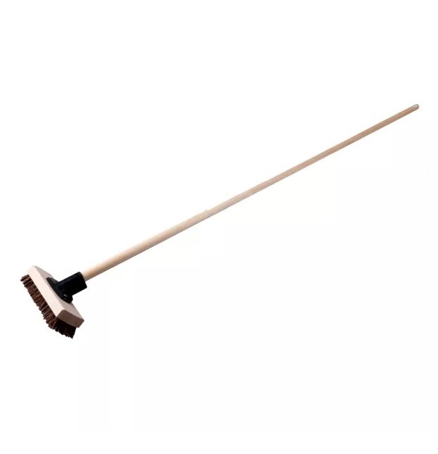 Komplett terrassskurborsteset med skaft. För effektiv borttagning av gammal olja och smuts innan ny träbehandling.