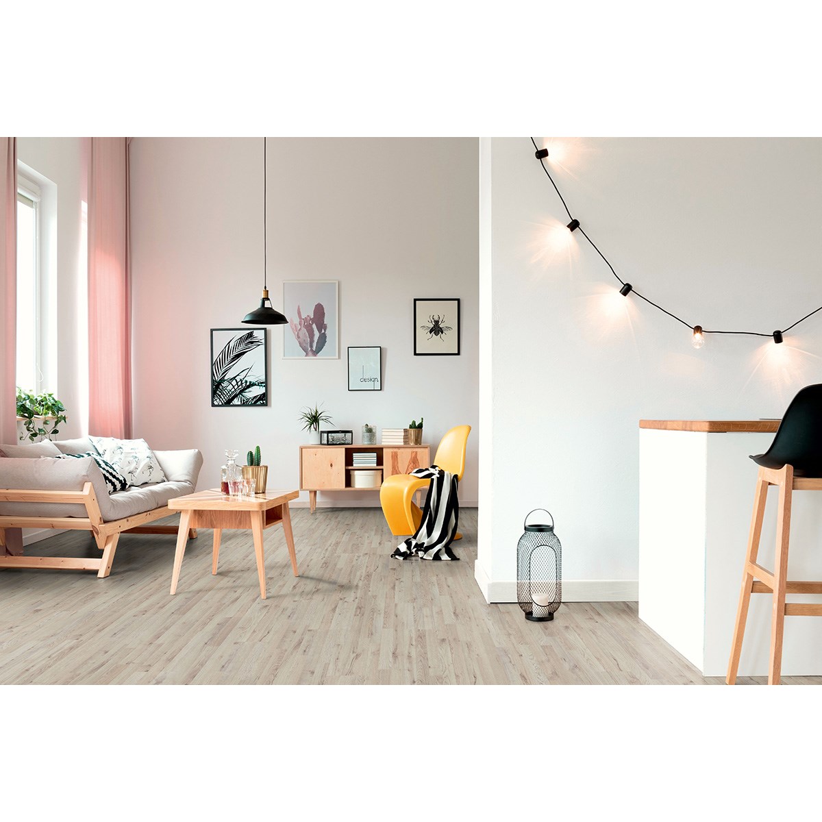 Laminatgolv Superior Basic Autumn Oak Light 3-stav Ett stilrent och snyggt ljust laminatgolv i 3-stavs utförande. Med sina ljusgråa toner blandat med ekens fina brunbeiga nyans får du ett naturtroget golv med dynamik och liv i. Med en slitageklass på 23/31 passar golvet utmärkt i sommarstugan och gästrummet.
