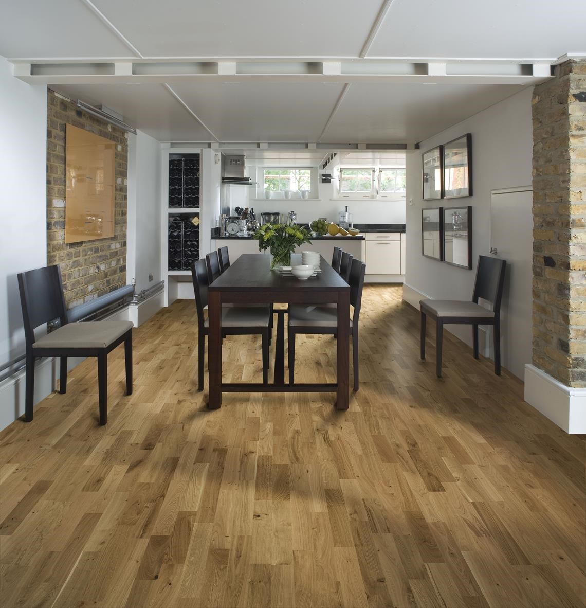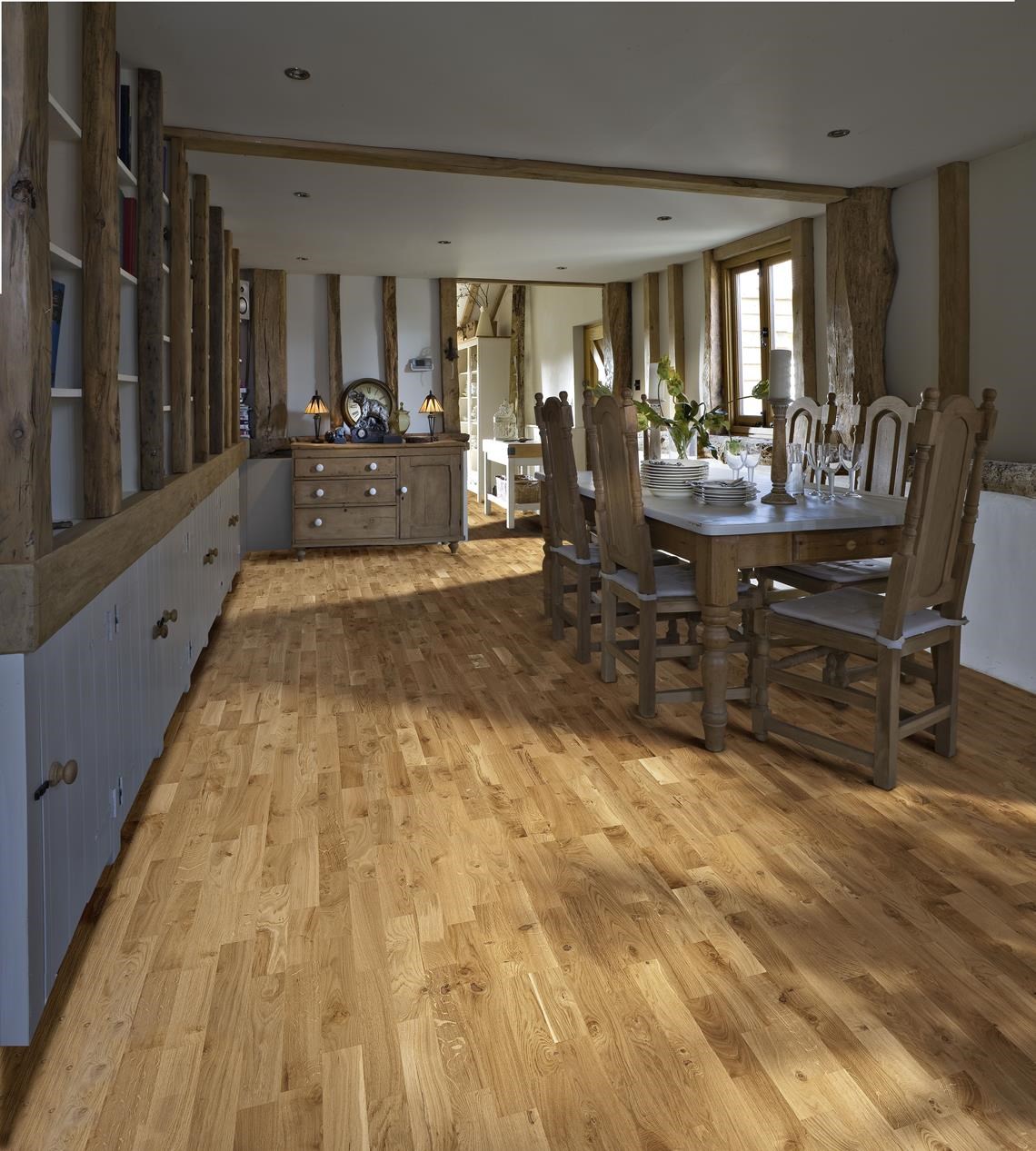 Parkettgolv Ardenne Ek, 3-stav – Ett golv i rustik stil som framhäver ekens naturliga färgvariationer. Golvet kan innehålla större kvistar och är mattlackat för både enkel rengöring och hög slitstyrka.