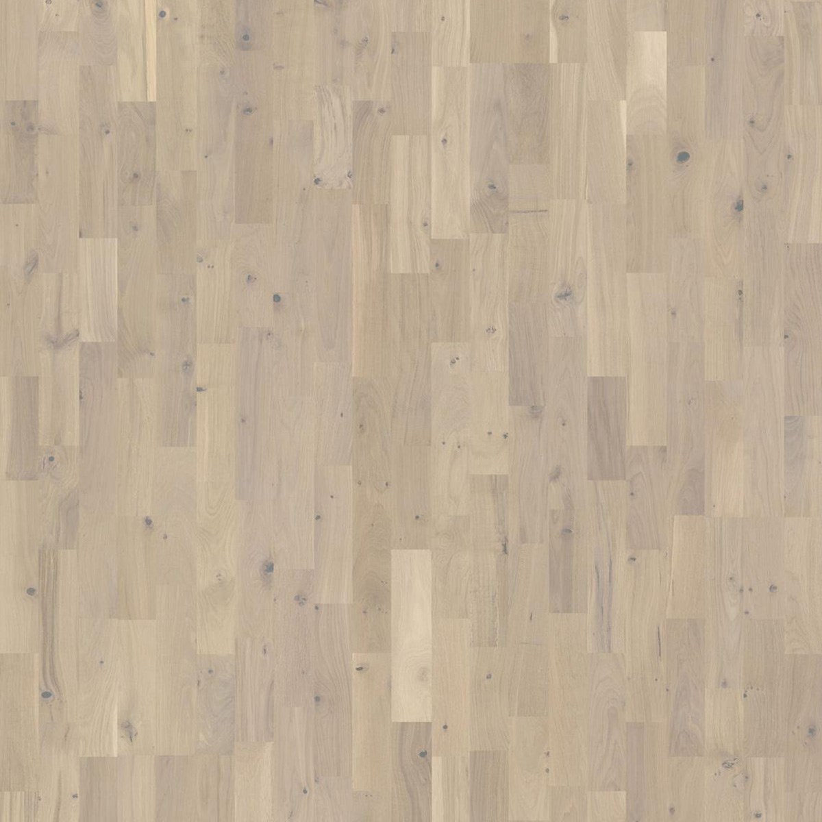 Parkettgolv Duramen Salt Ek. Genom att hämta inspiration från naturens mjuka skiftningar, från vita nyanser till subtila ljusgrå och beige toner, har vi tagit fram Ek Salt, ett modernt och ljust golv till alla interiörer. Den vita färgen på detta 3-stavsgolv dämpar variationerna och kontrasten i ekens kärnved. Den matta lackfinishen eliminerar glans samtidigt som den skyddar träet från dagligt slitage.
