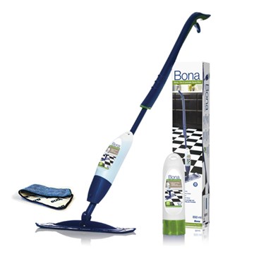 Ergonomisk spraymopp av hög kvalitet som kombinerar Bona Renöringsmedel för Sten, Klinker och Laminat och Bona Mikrofibermopp för Våttorkning. Rengöringsmedlet är särskilt anpassat för linoleum, sten, terrazzo, vinyl, tät porös marmor, laminat och ovaxad tät klinker (keramik, saltillo, natursten). Med ett tryck på handtaget sprayas rengöringsmedlet i lagom dos på golvet, vilket gör det snabbt och enkelt att rengöra dina trägolv.