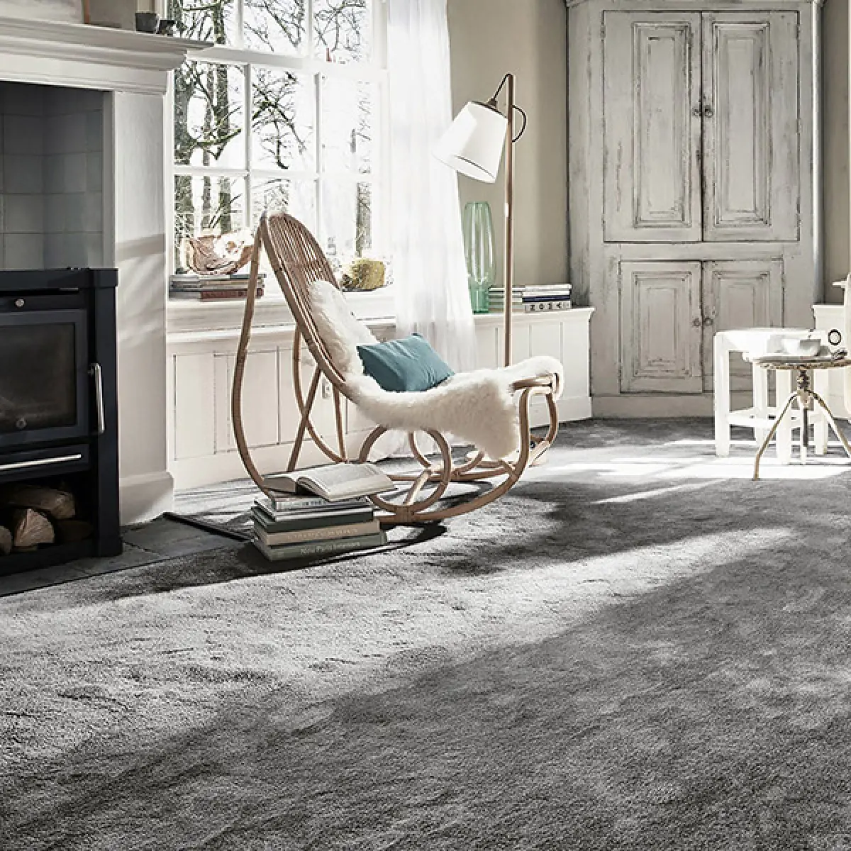 Heltäckningsmatta Cosy 97 400 cm är en grå heltäckningsmatta med skuren lugg. Den skurna luggen kombinerad med filtbaksidan gör mattan mjuk och bekväm att gå på. Luggen är gjord av 100% polyamid garn som gör luggen extra mjuk. Den skurna luggen är ca 7mm hög vilket underlättar vid underhållet av mattan. Med en hög komfort och slittålighet är Cosy ett utmärkt val till hemmets allra flesta rum som till exempel vardagsrum, sovrum och hall.