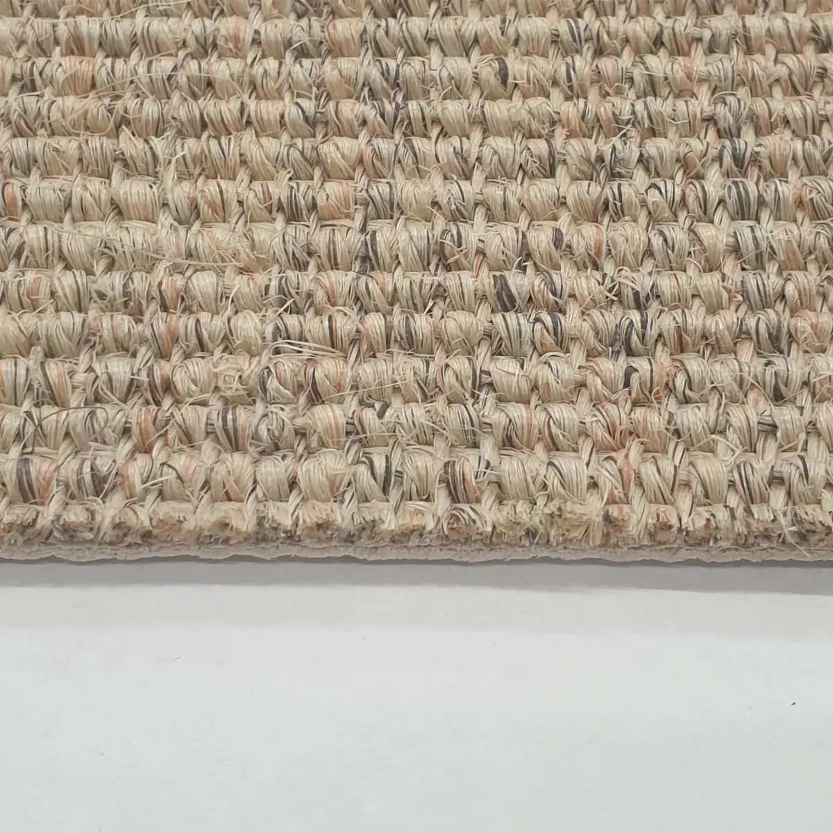 Heltäckningsmatta Sisal Bouclé Ljusbeige 41 400 cm är en ribbad matta som är gjord i 100% sisal, rekommenderas både till hem och offentlig miljö. Sisalen känns naturnära och är av hög kvalité vilket gör den till en utmärkt val till såväl vardagsrum som trapp. Mattan ger en rustik känsla och ger en härlig effekt i vilket rum som helst. Passar även utmärkt till att kapa och bandkantas i önskade mått.